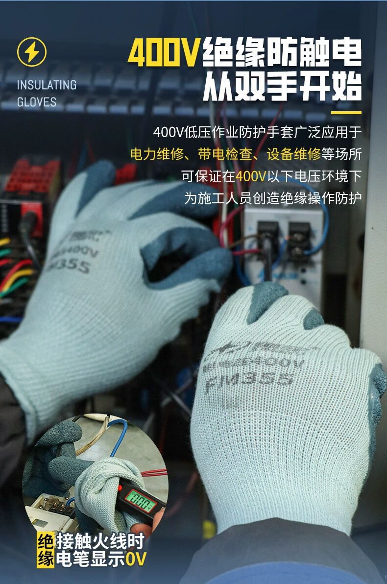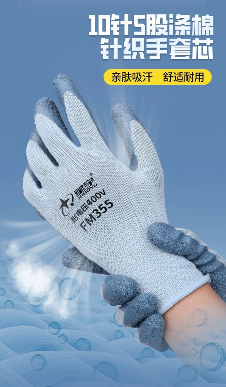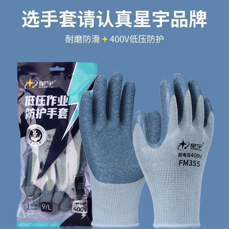 Xingyu FM355 라이브 작업 전기 반대로 전기 고전압 주름 내마모성 400V 저전압 절연 노동 보호 장갑스토어 가기