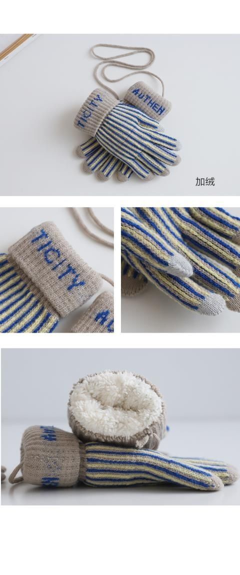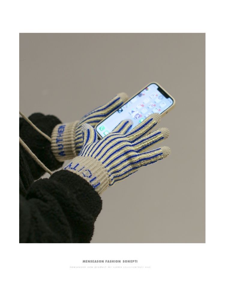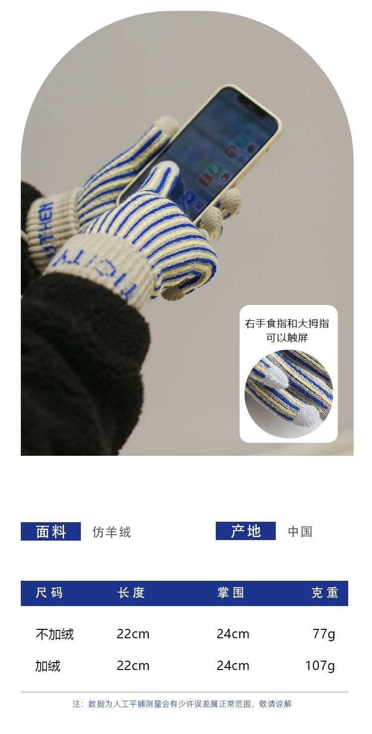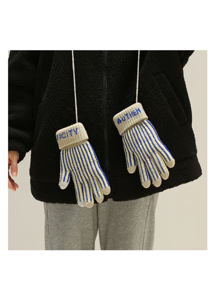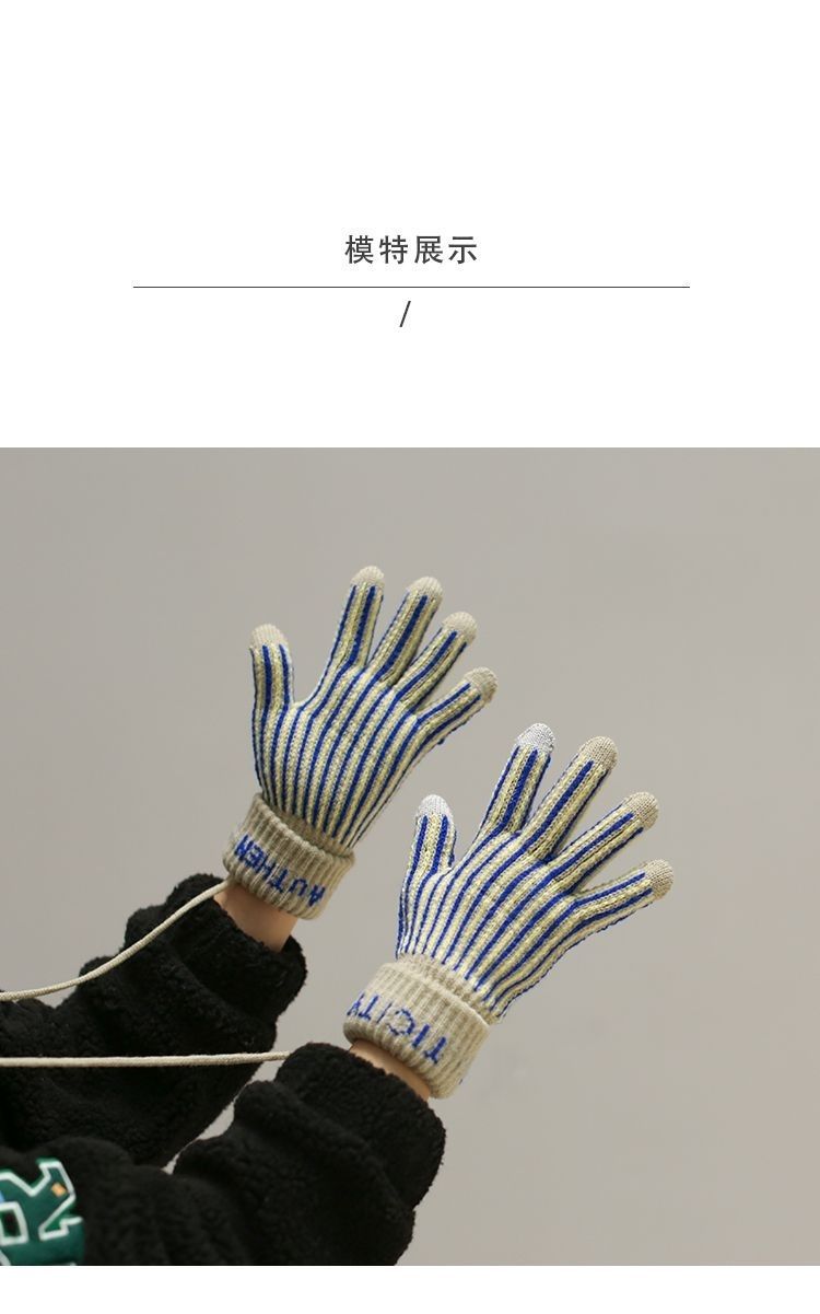 남성과 여성을위한 세련된 복고풍 줄무늬 대비 니트 터치 스크린 장갑 겨울 따뜻한 기모 목 교수형 학생 커플 다섯 손가락스토어 가기