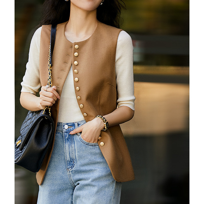 정교하게 짜여진 울 조끼, 우아한 질감의 슬림핏 싱글 버튼 조끼, 2025 봄 가을 신상 여성용 숏탑스토어 가기