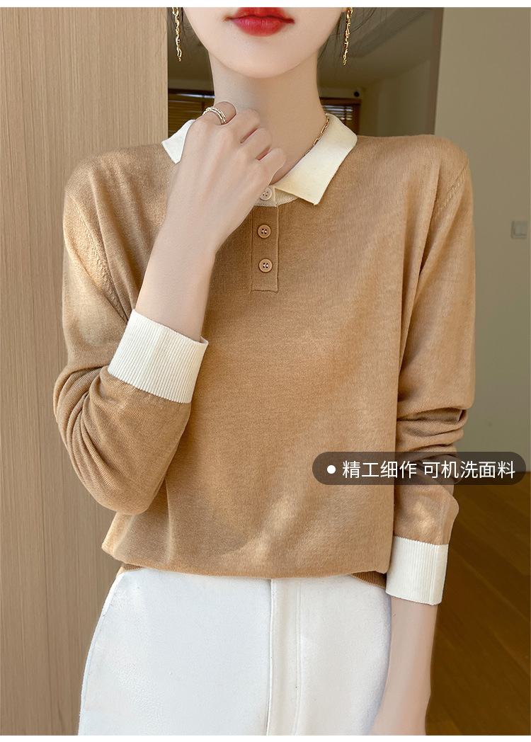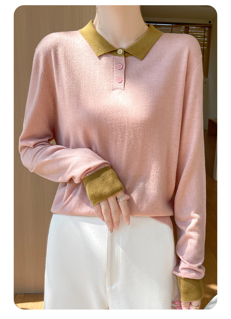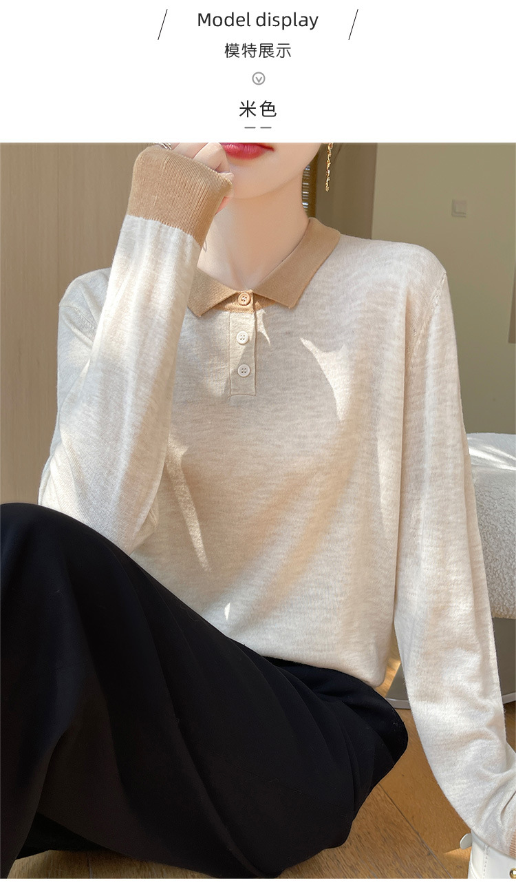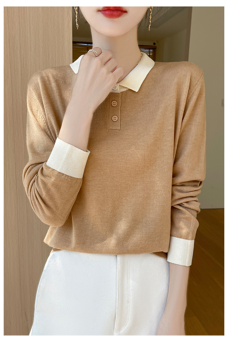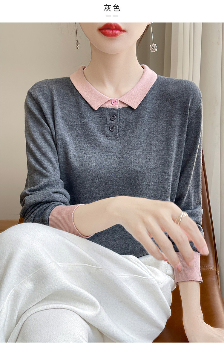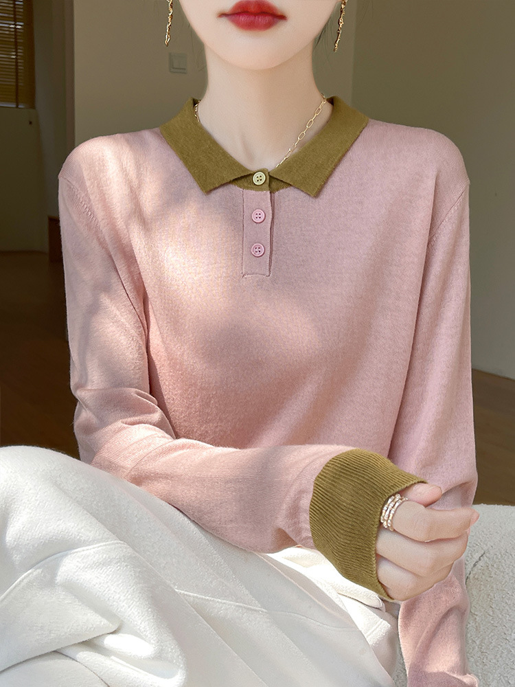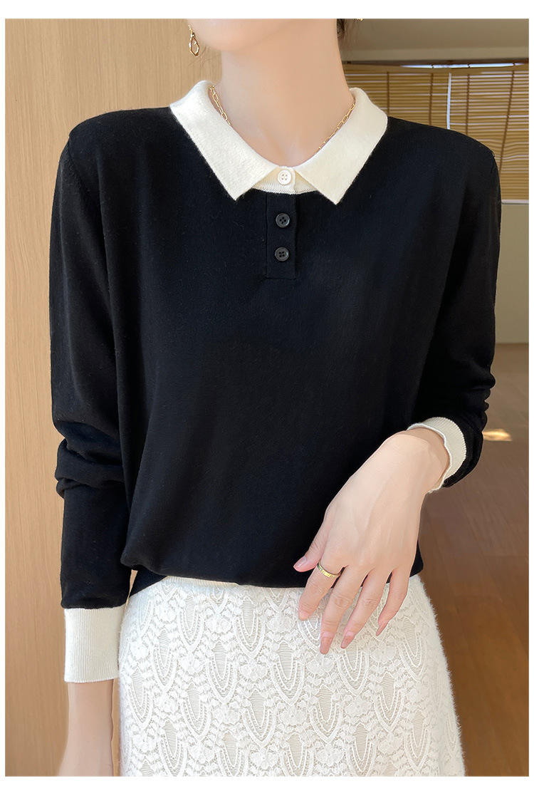 Colorblock POLO 칼라 니트 긴팔 티셔츠 여성용 서양식 연령 감소 콘트라스트 컬러 루즈베이스 탑 초가을 얇은 스웨터