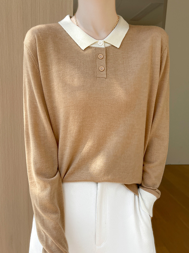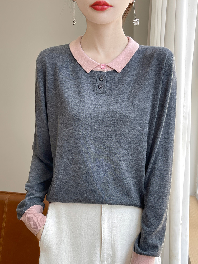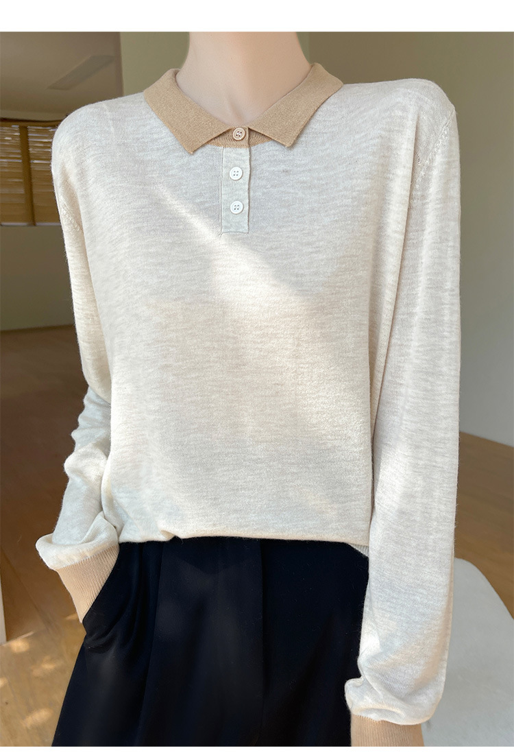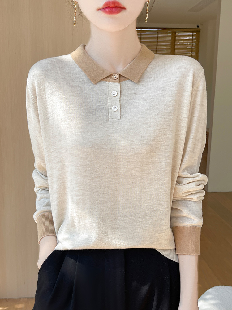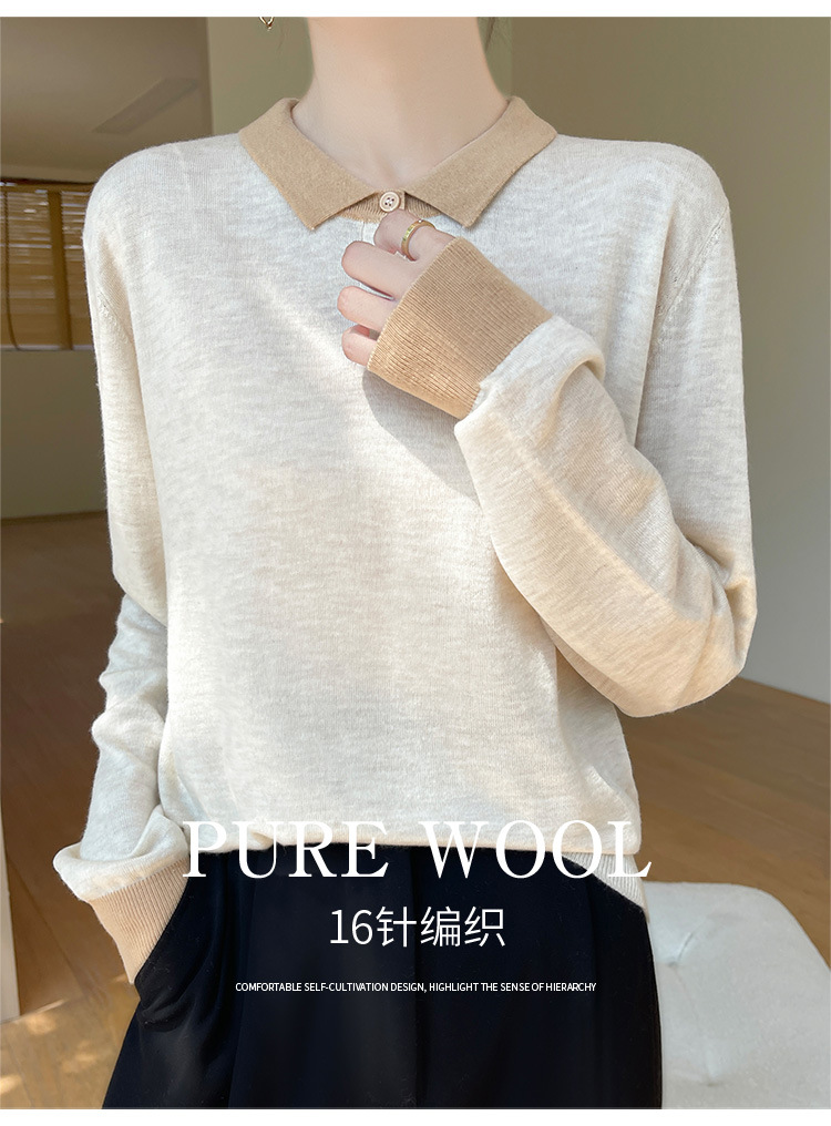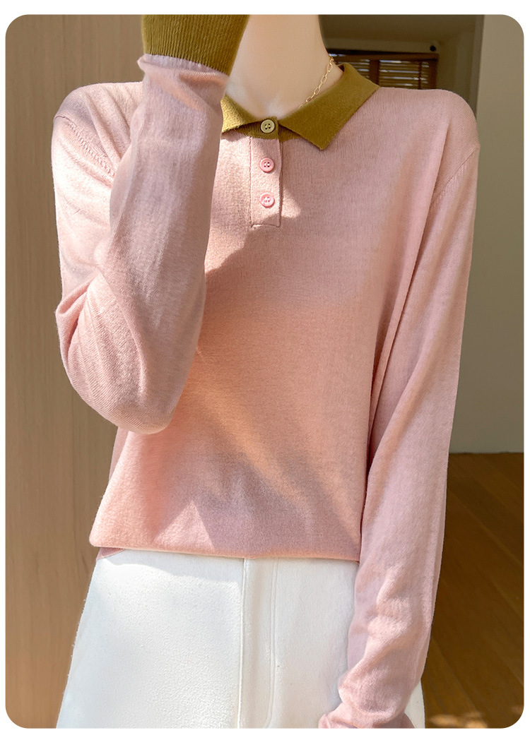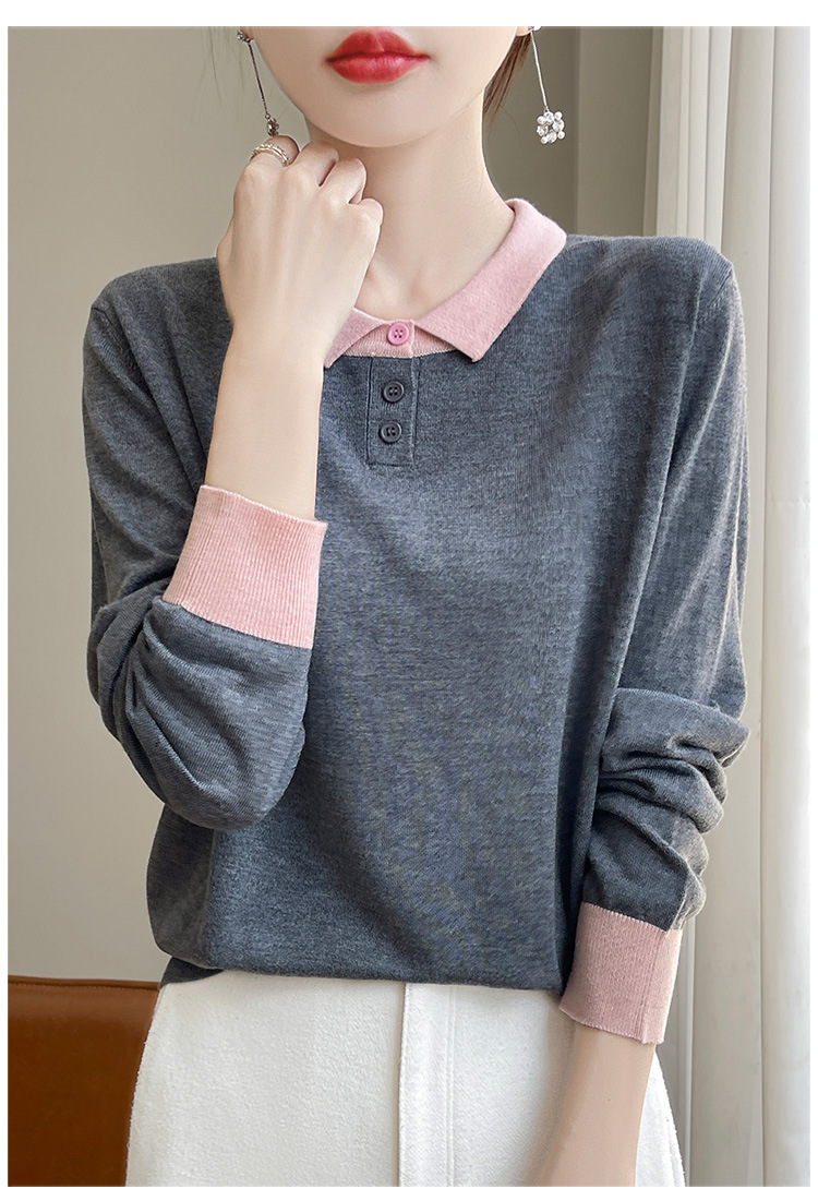 Colorblock POLO 칼라 니트 긴팔 티셔츠 여성용 서양식 연령 감소 콘트라스트 컬러 루즈베이스 탑 초가을 얇은 스웨터