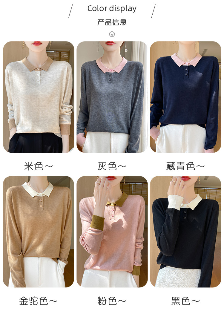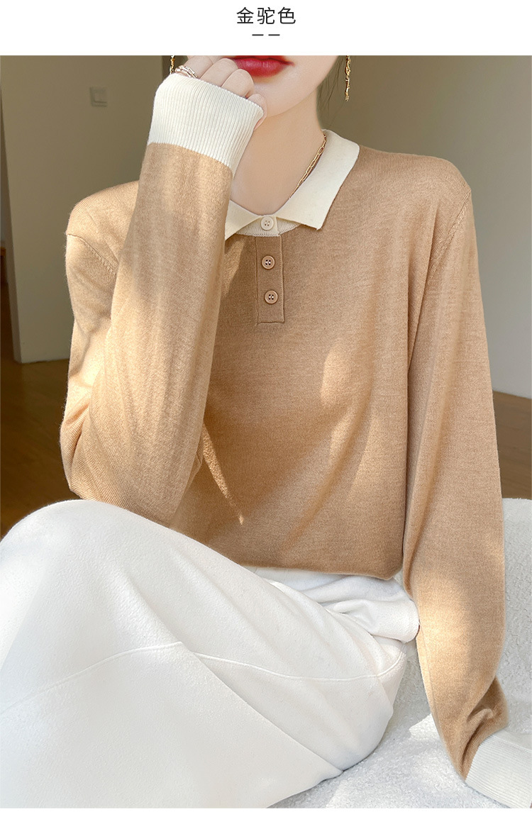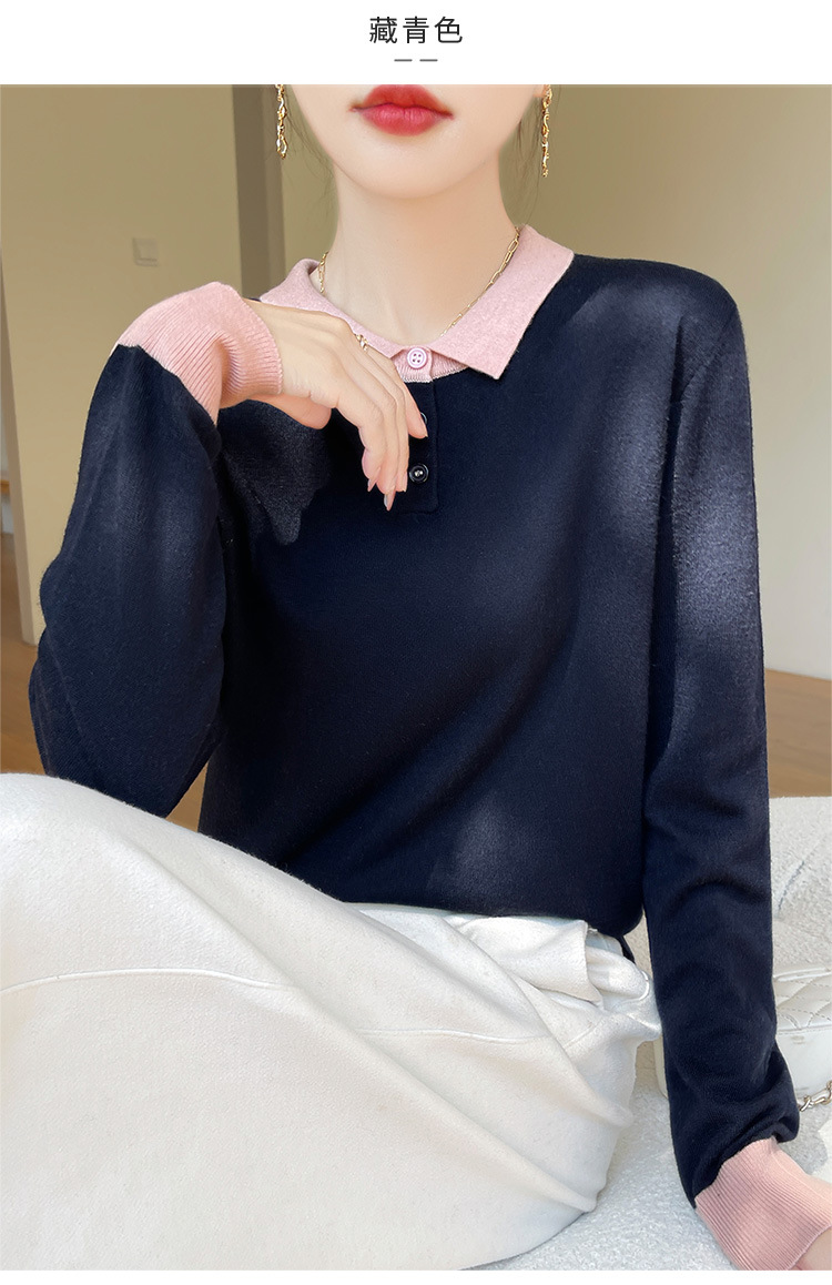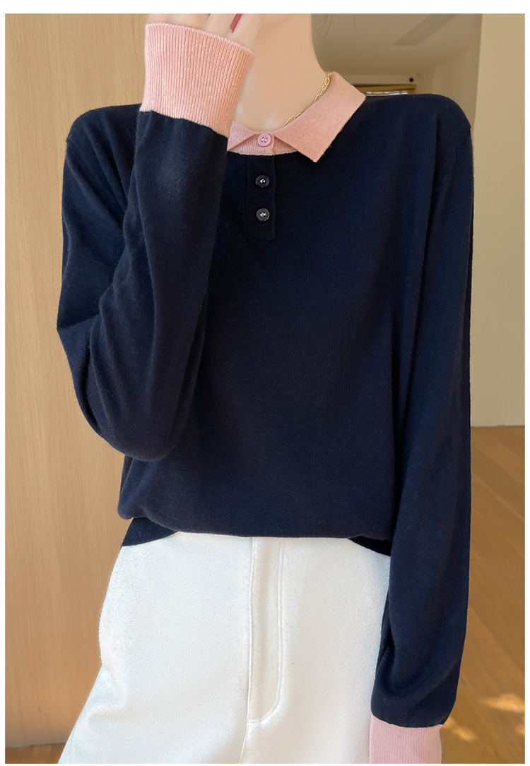Colorblock POLO 칼라 니트 긴팔 티셔츠 여성용 서양식 연령 감소 콘트라스트 컬러 루즈베이스 탑 초가을 얇은 스웨터스토어 가기