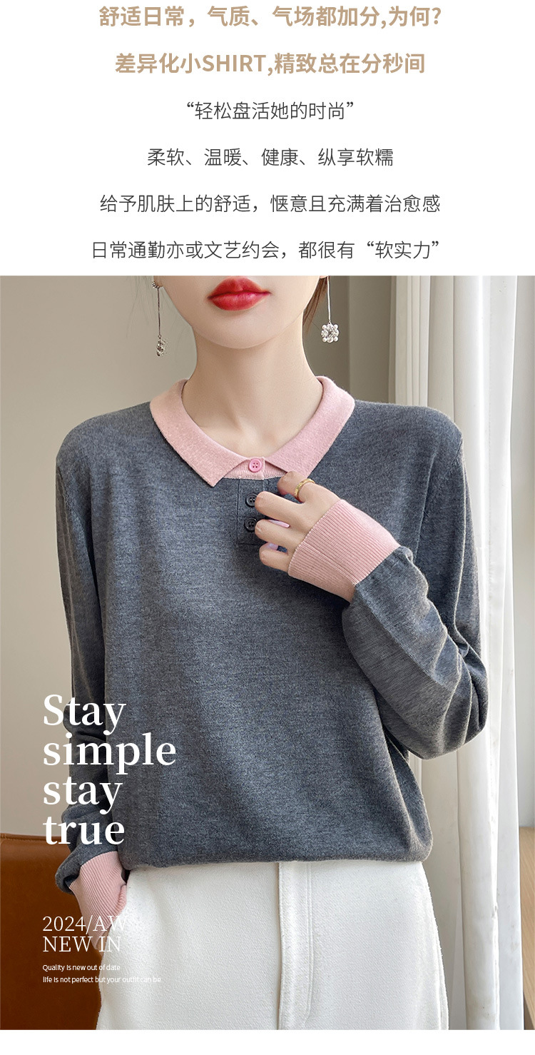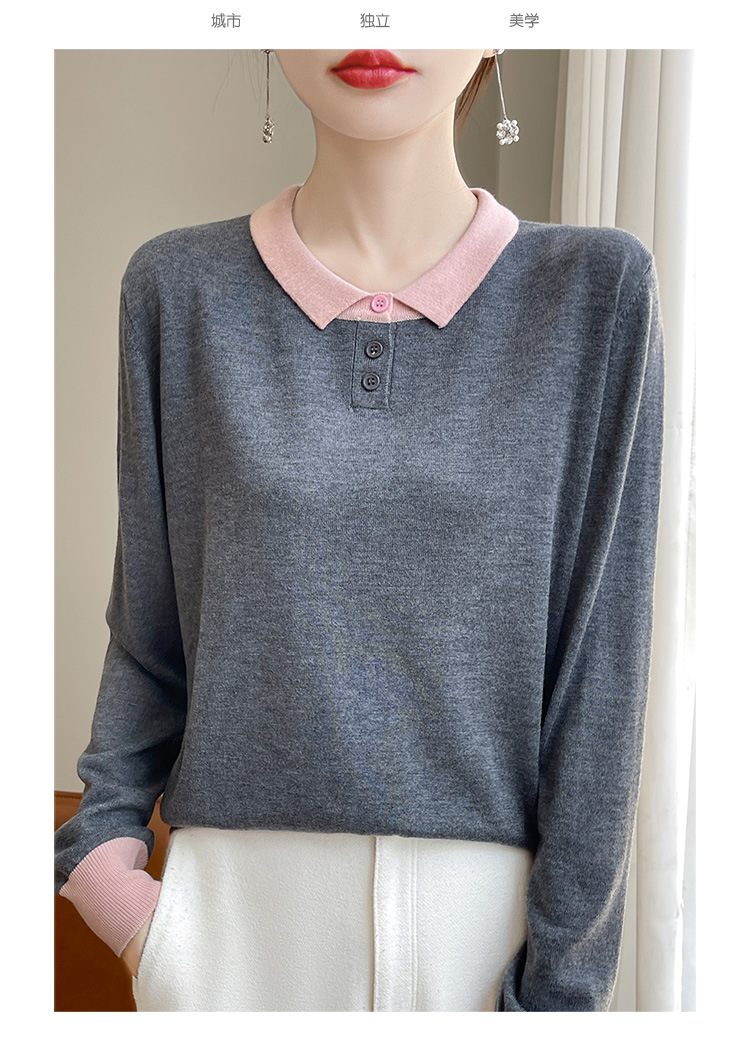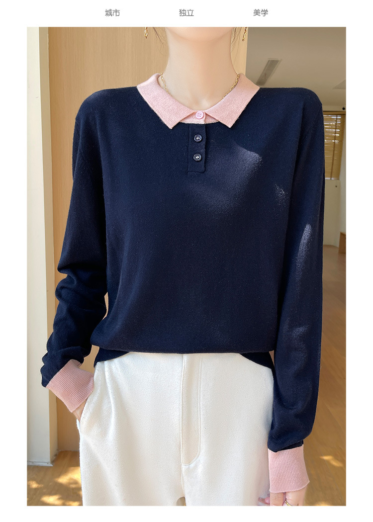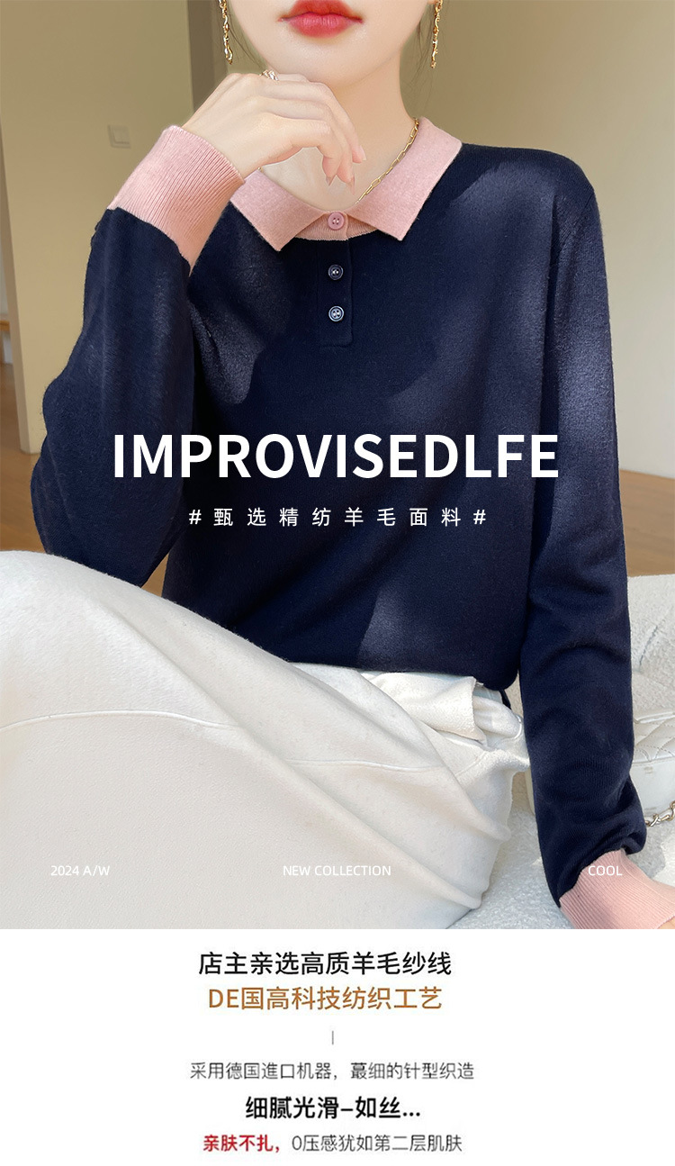 Colorblock POLO 칼라 니트 긴팔 티셔츠 여성용 서양식 연령 감소 콘트라스트 컬러 루즈베이스 탑 초가을 얇은 스웨터스토어 가기