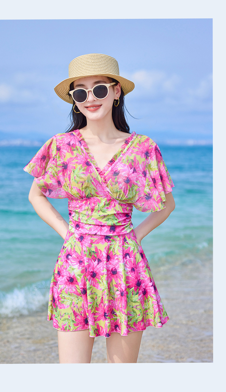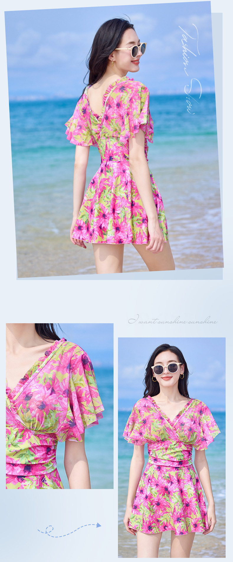 프랑스 스타일 꽃 원피스 여성의 육식 슬리밍 수영복 여름 새로운 스타일 거즈 스타일 연령대 휴가 수영복