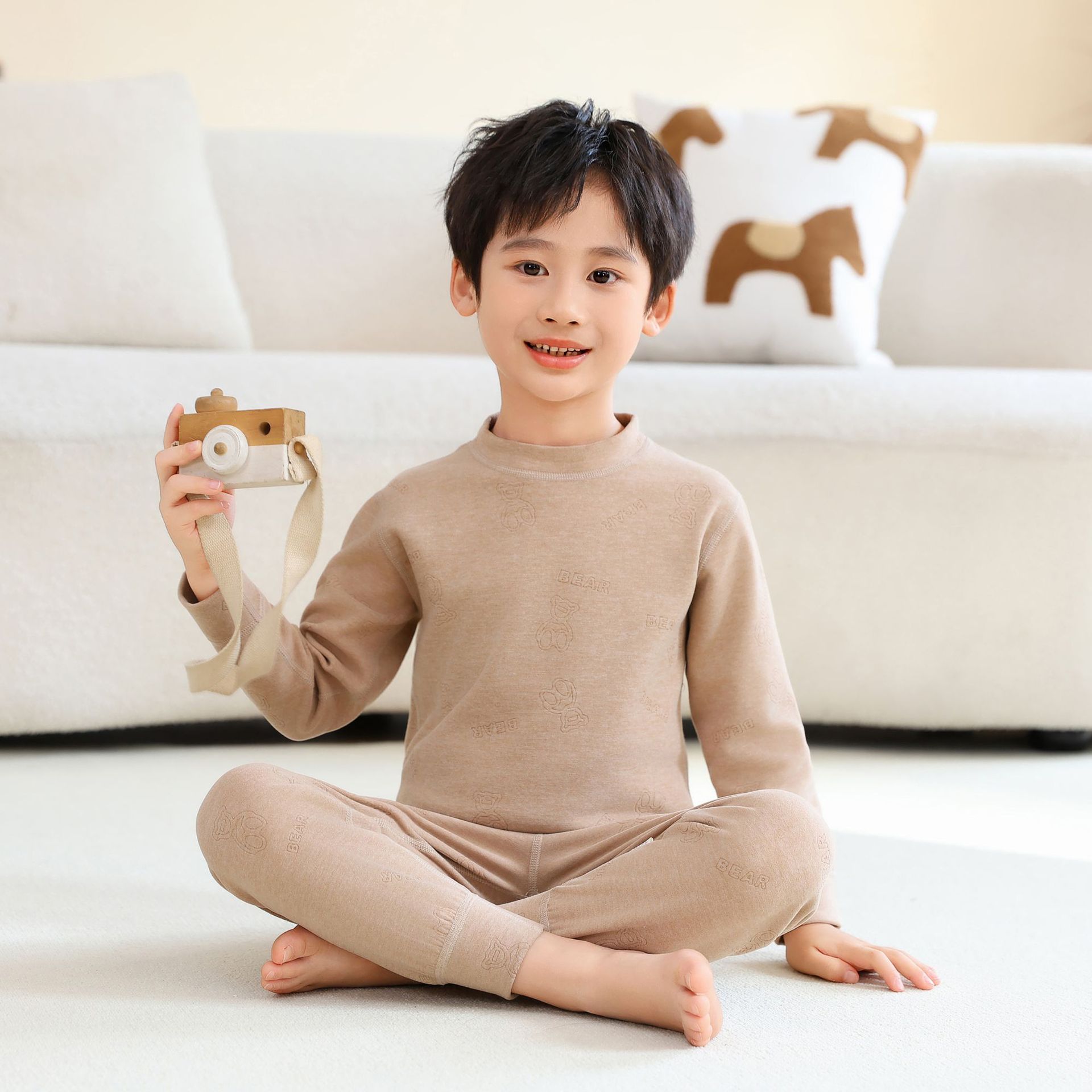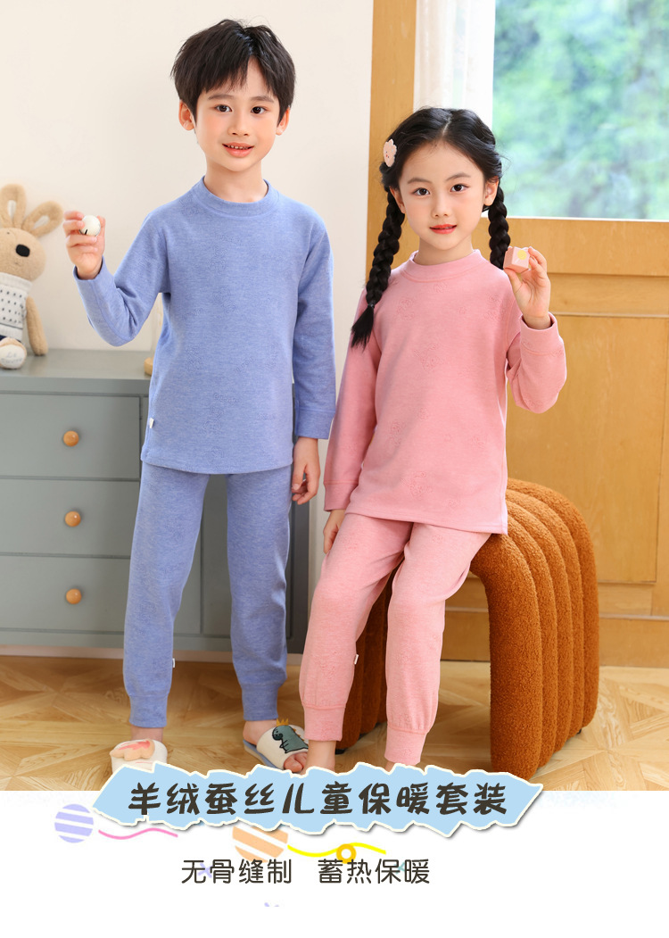 가을 및 겨울 새로운 어린이 가정 옷 실크 캐시미어 소년과 소녀 가을 옷 가을 바지 큰 어린이 열 속옷 세트