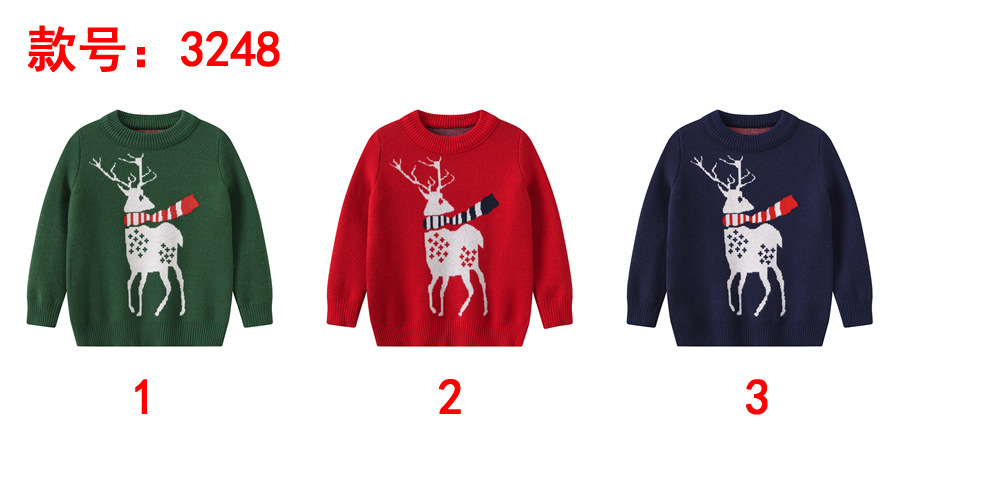 새로운 가을 겨울 남아 여아 아동복 한국 스타일 크리스마스 엘크 영국 패션 루즈핏 풀오버 스웨터 도매스토어 가기