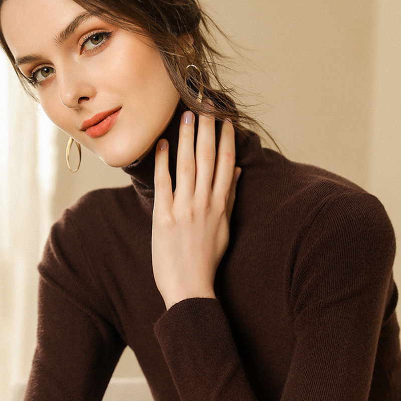 가을과 겨울 새로운 더미 칼라 니트웨어 양모 터틀넥 스웨터 여성용 슬림 핏 슬리밍 내부 두꺼운 펄버 베이스 셔츠
