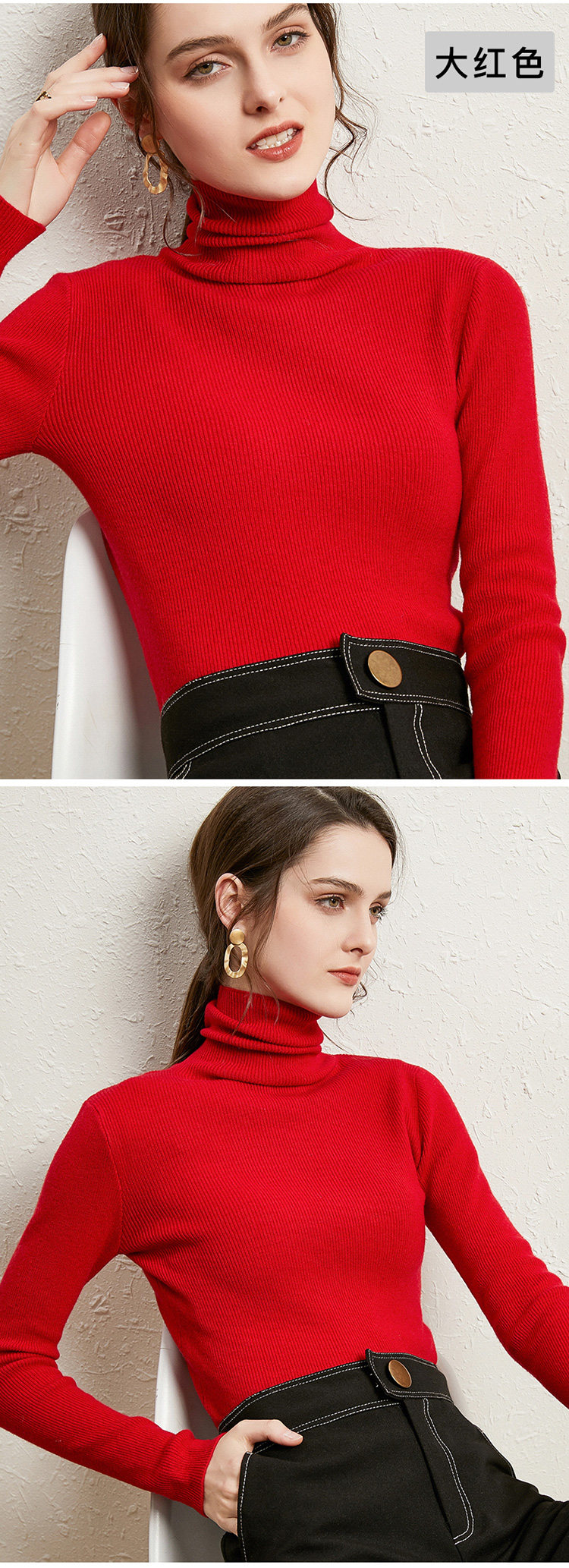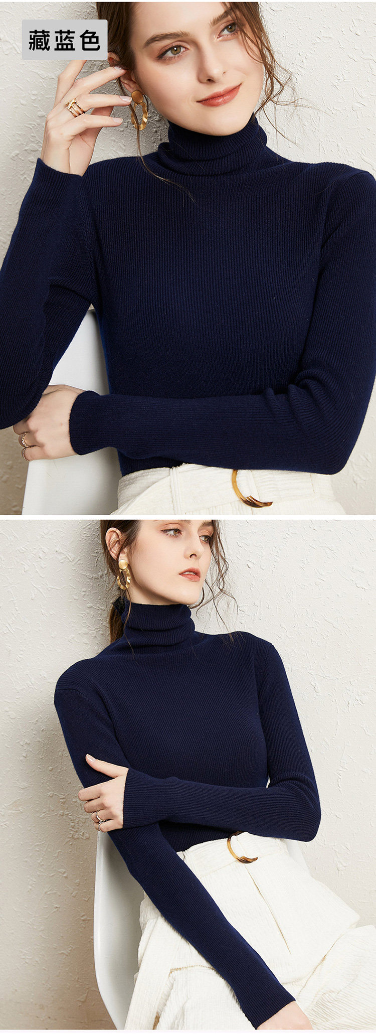 가을 겨울용 터틀넥 니트 스웨터 여성용 슬림핏 터틀넥 스웨터 두꺼운 보온성 이너웨어스토어 가기