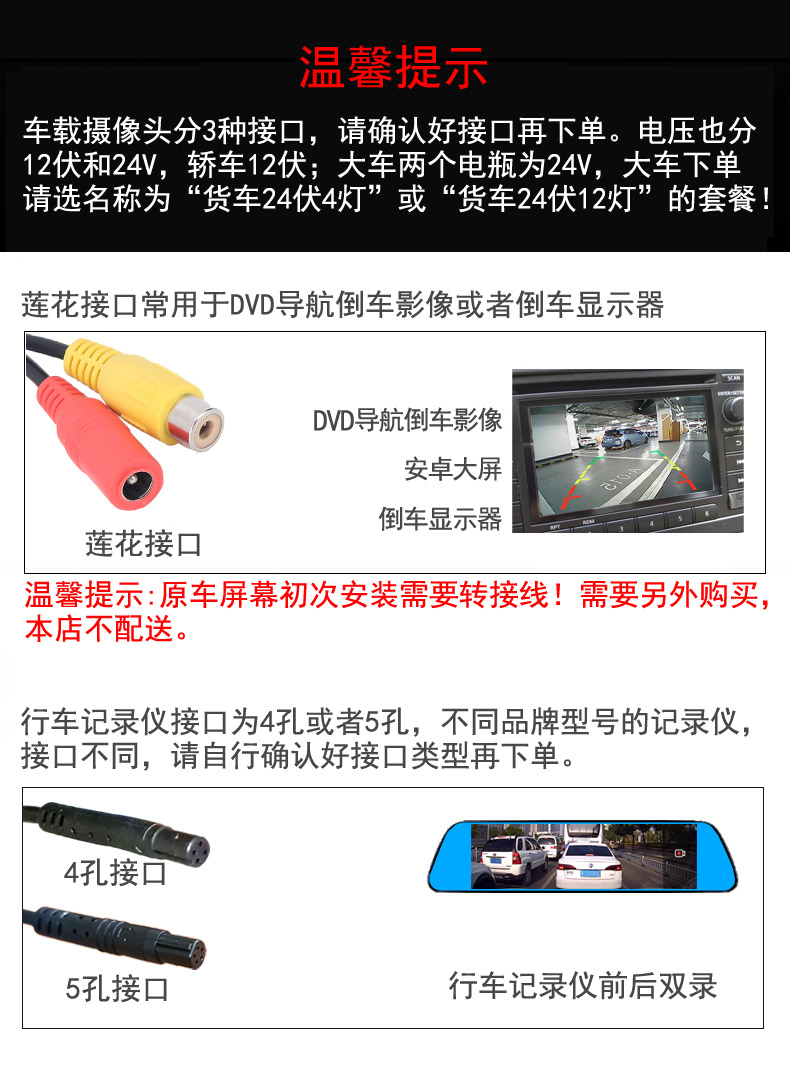 자동차 HD 반전 카메라 CCD 후면 카메라 자동차 대형 화면 보편적 인 광각 자동차 트럭 레코더 4/5 구멍