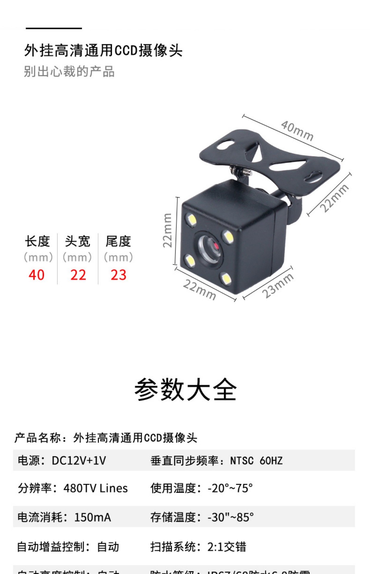 자동차 HD 반전 카메라 CCD 후면 카메라 자동차 대형 화면 보편적 인 광각 자동차 트럭 레코더 4/5 구멍스토어 가기