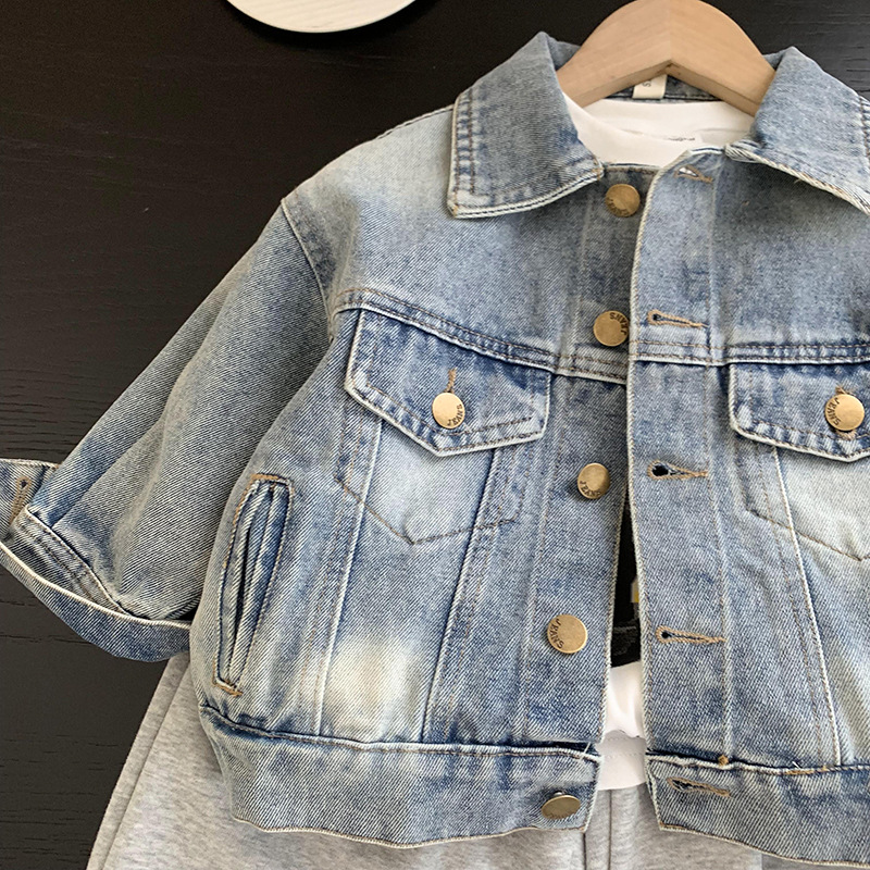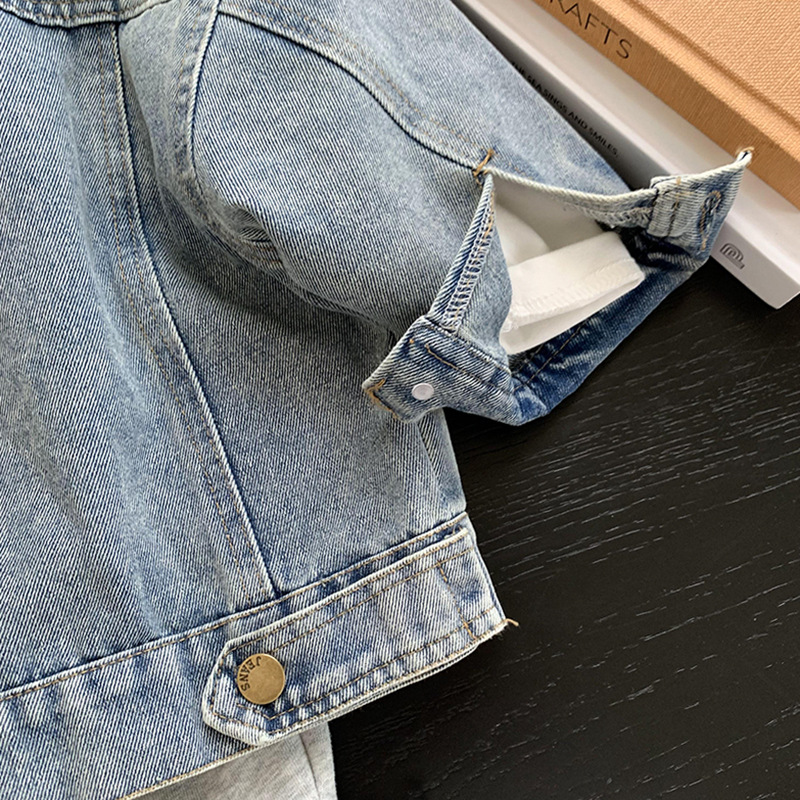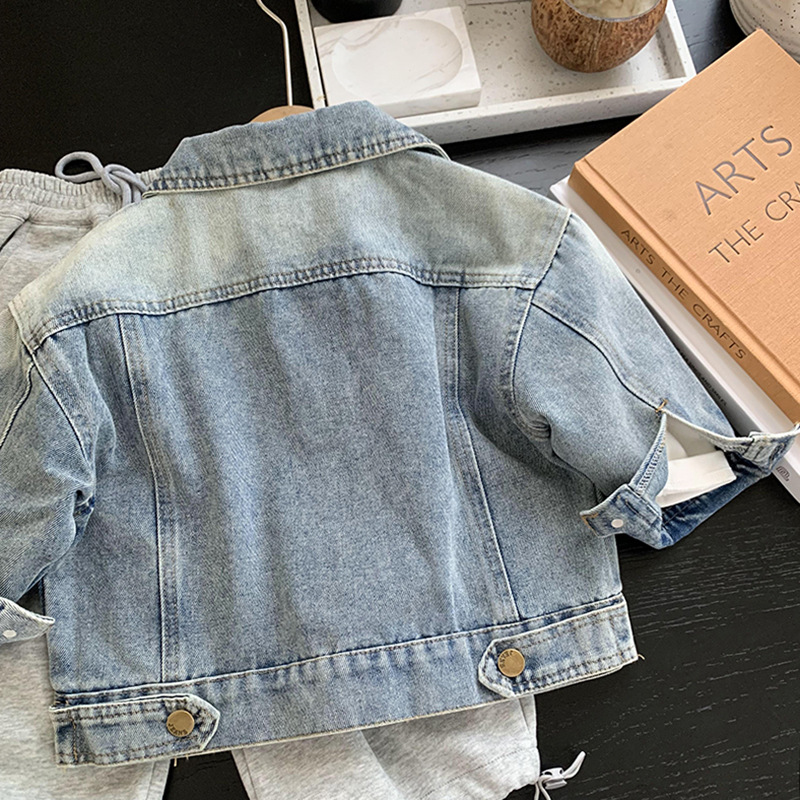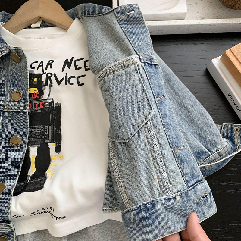 Twilight Yue 2024 가을 새 아동복 한국식 올매치 잘 생긴 소년 소녀 라이트 컬러 세척 데님 코트 트렌디스토어 가기