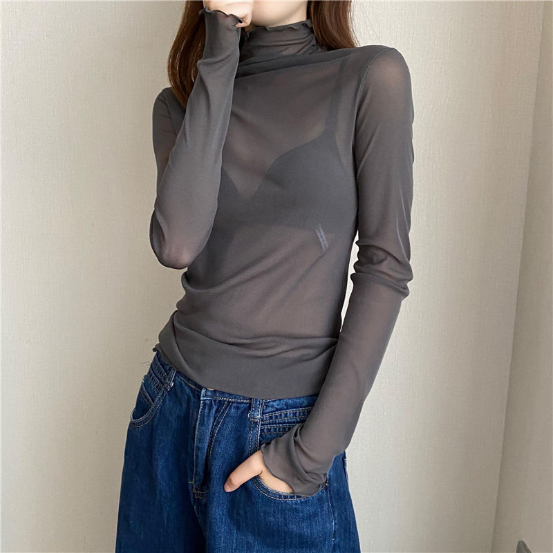 베이스 긴 소매 레이스베이스 셔츠 여성용 아이스 실크 메쉬 얇은 봄과 여름 내부 티셔츠 웨스턴 스타일 쉬폰 셔츠