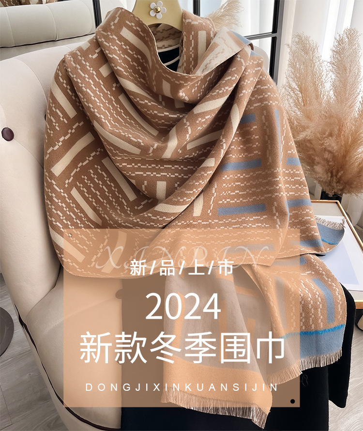 秋冬围脖仿羊绒加厚加长保暖空调披肩短须流苏装饰波浪提花围巾