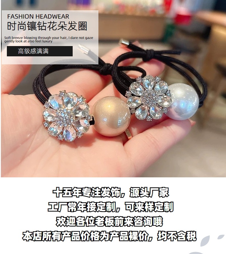 여름 한국 간단한 패션 다이아몬드가 박힌 꽃 머리 로프 여성의 하이 엔드 하이 센스 포니 테일 올 매치 볼 헤드 고무 텐돈