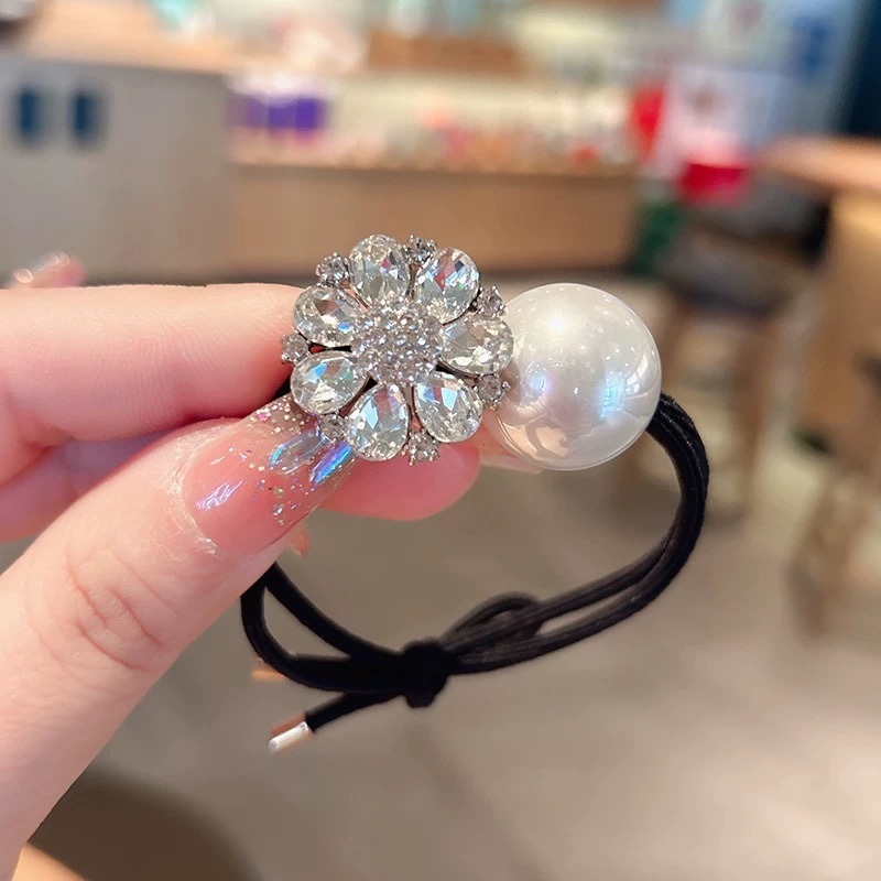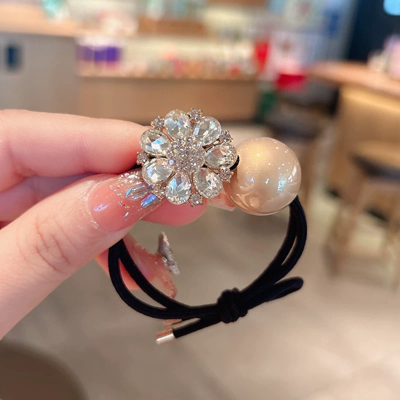 여름 한국 간단한 패션 다이아몬드가 박힌 꽃 머리 로프 여성의 하이 엔드 하이 센스 포니 테일 올 매치 볼 헤드 고무 텐돈스토어 가기