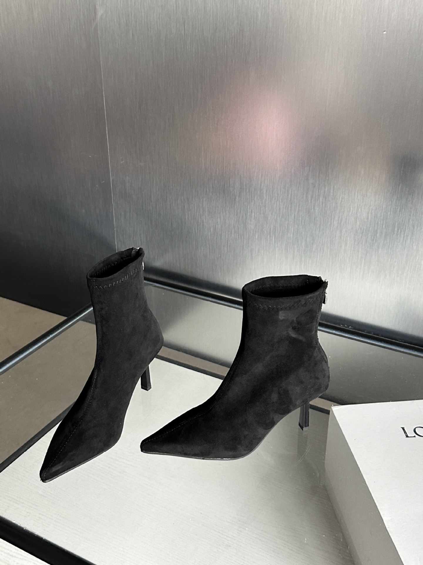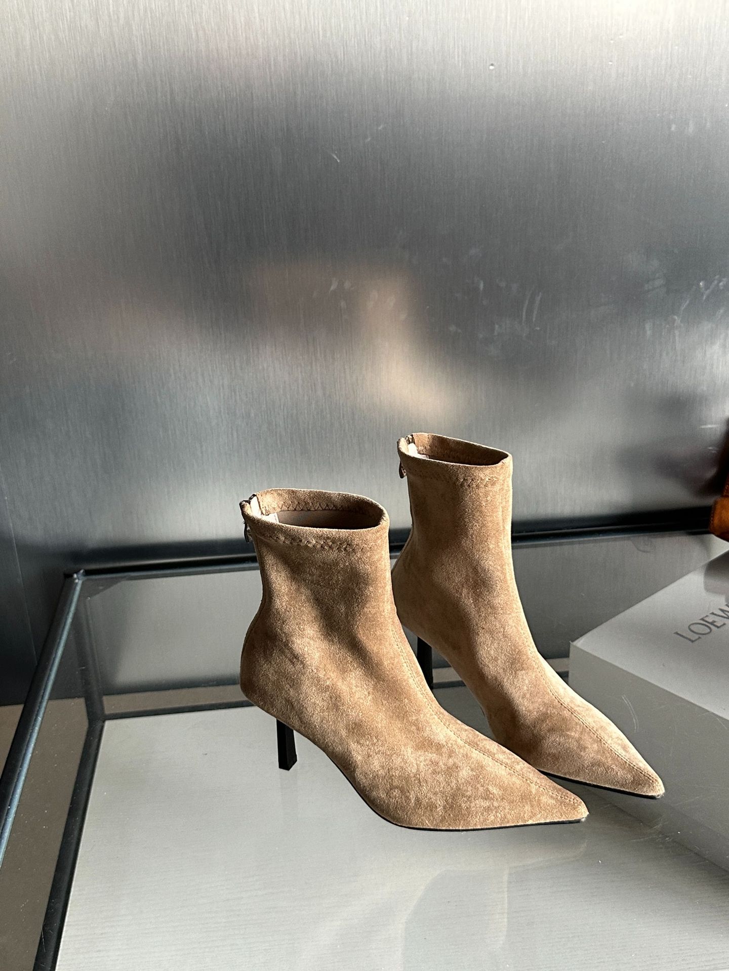 10086-1 레트로 포인팅 스트레치 얇은 부츠 새로운 스웨이드 우아한 하이힐 패션 부츠 의상 유행 발목 부츠