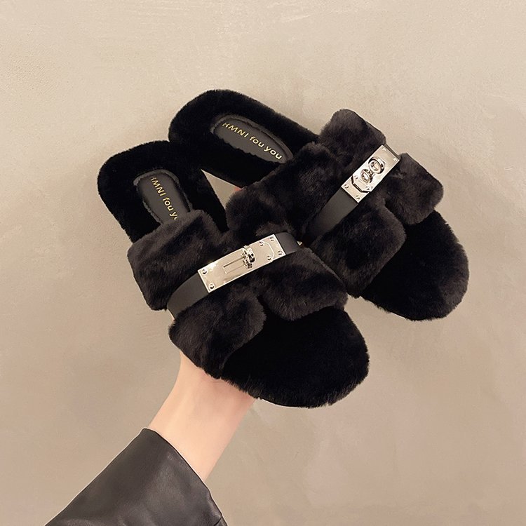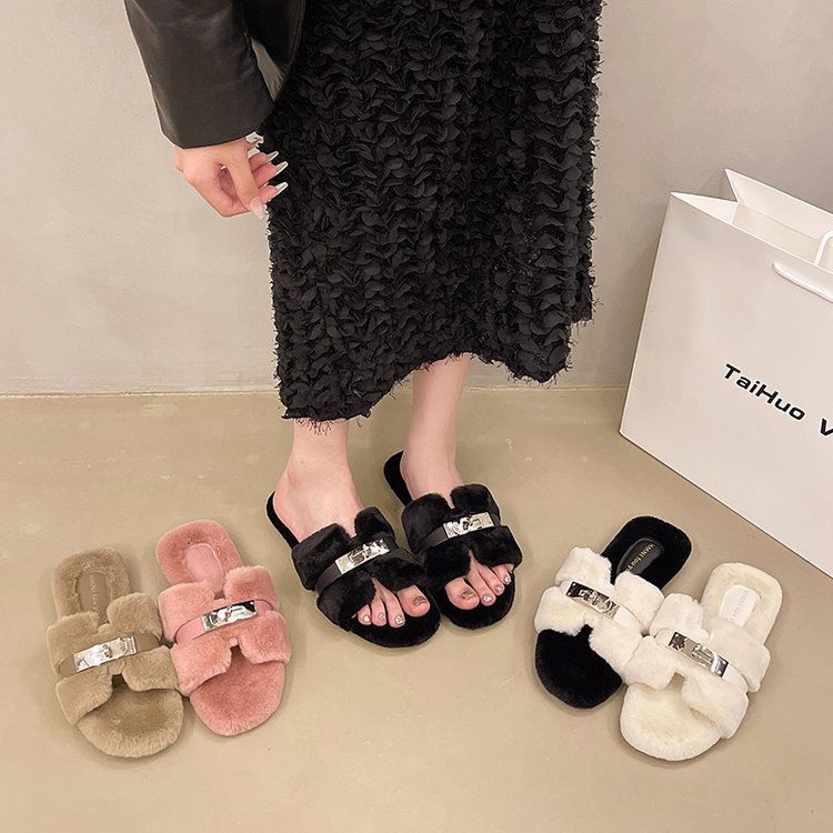 반슬리퍼 여성용 외출용 2025 가을 겨울 신상 인기 플랫힐 편안한 작은 향수풍 반슬리퍼 여성화