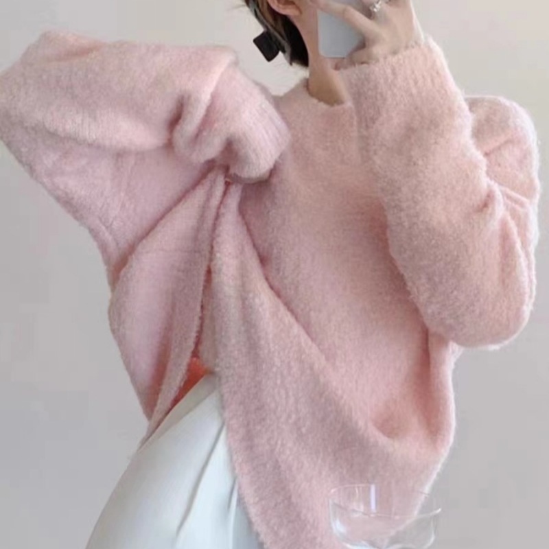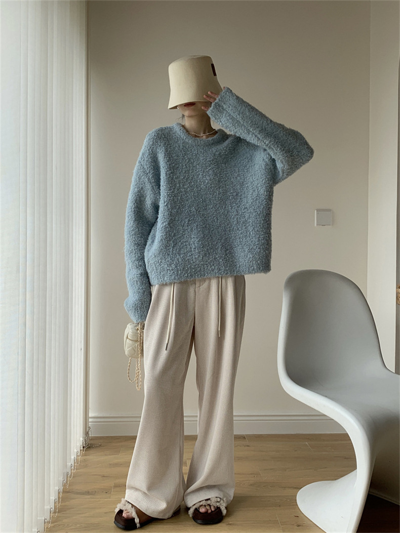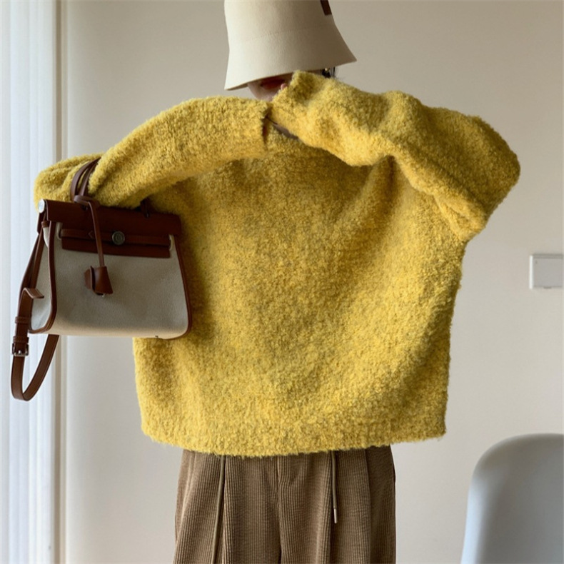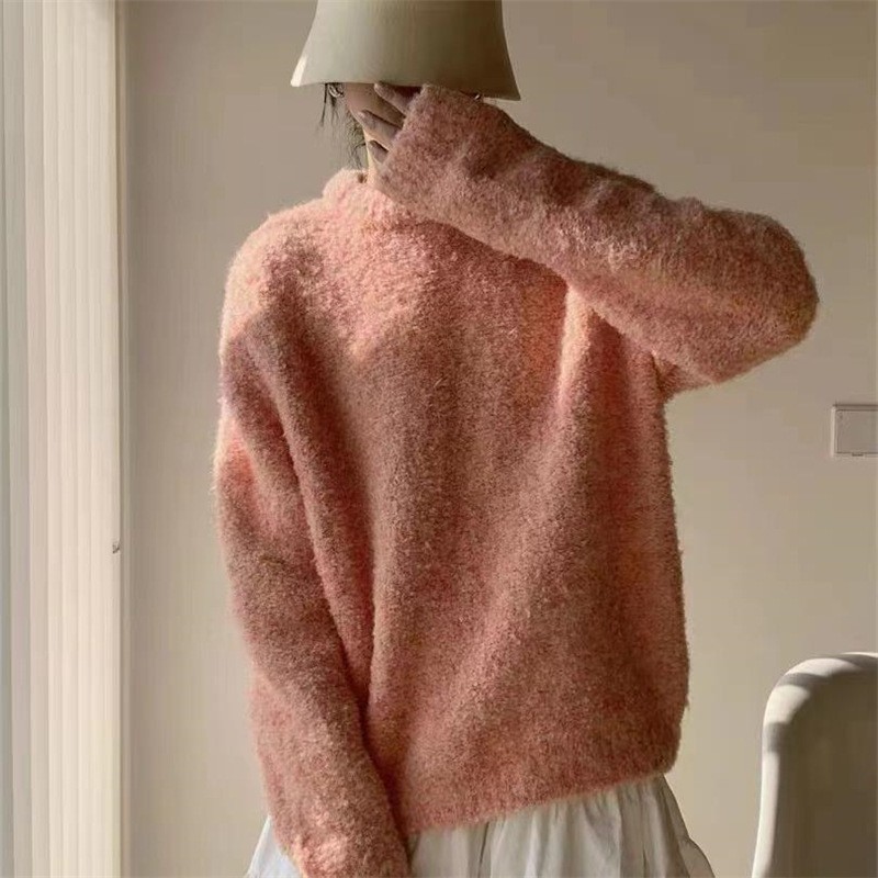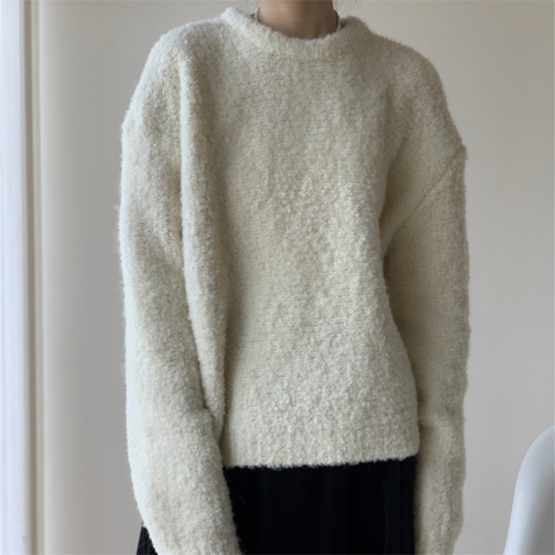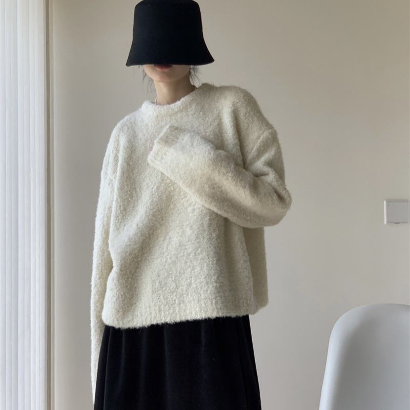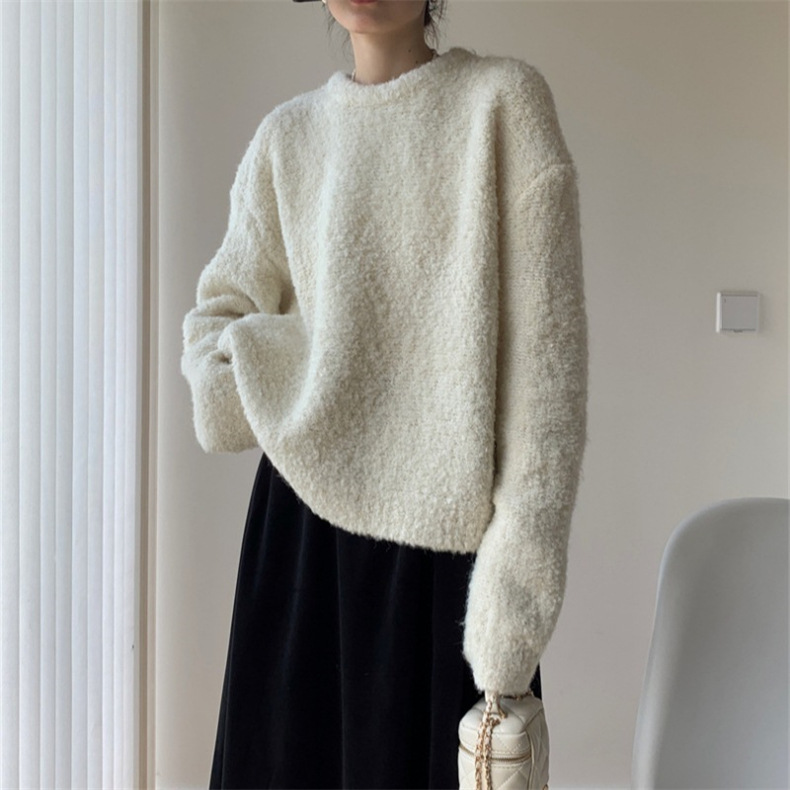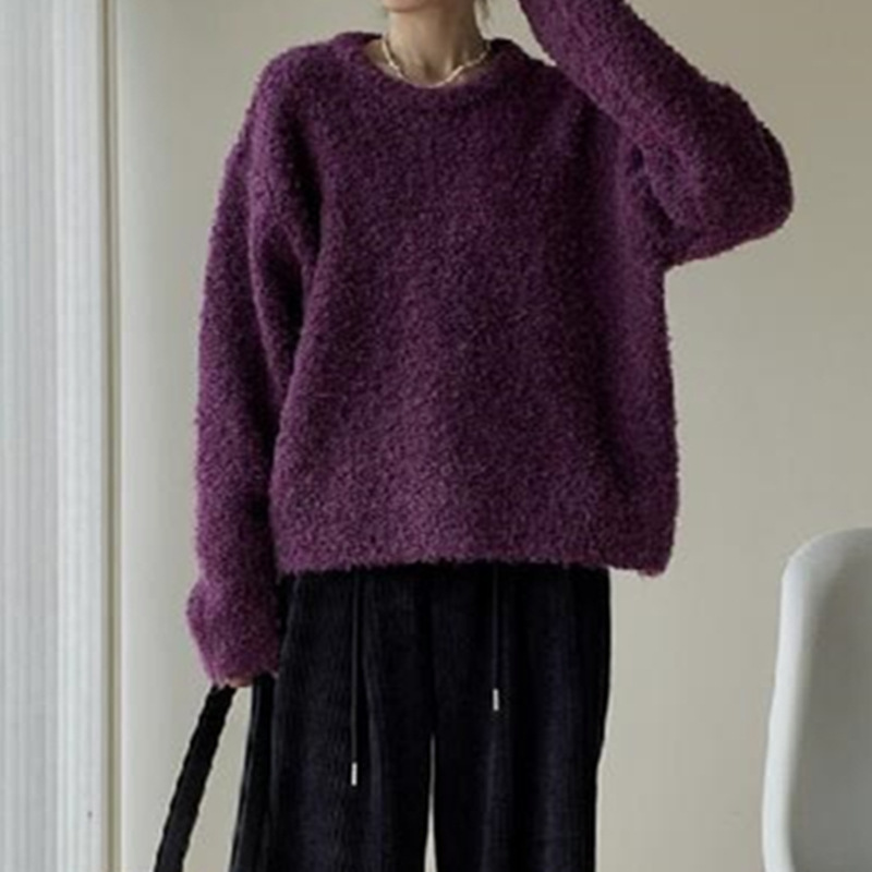 루프 원사 솔리드 컬러 라운드 넥 풀오버 스웨터 여성의 2025 가을 및 겨울 새로운 국경 한국 느슨한 게으른 스타일 니트 스웨터스토어 가기