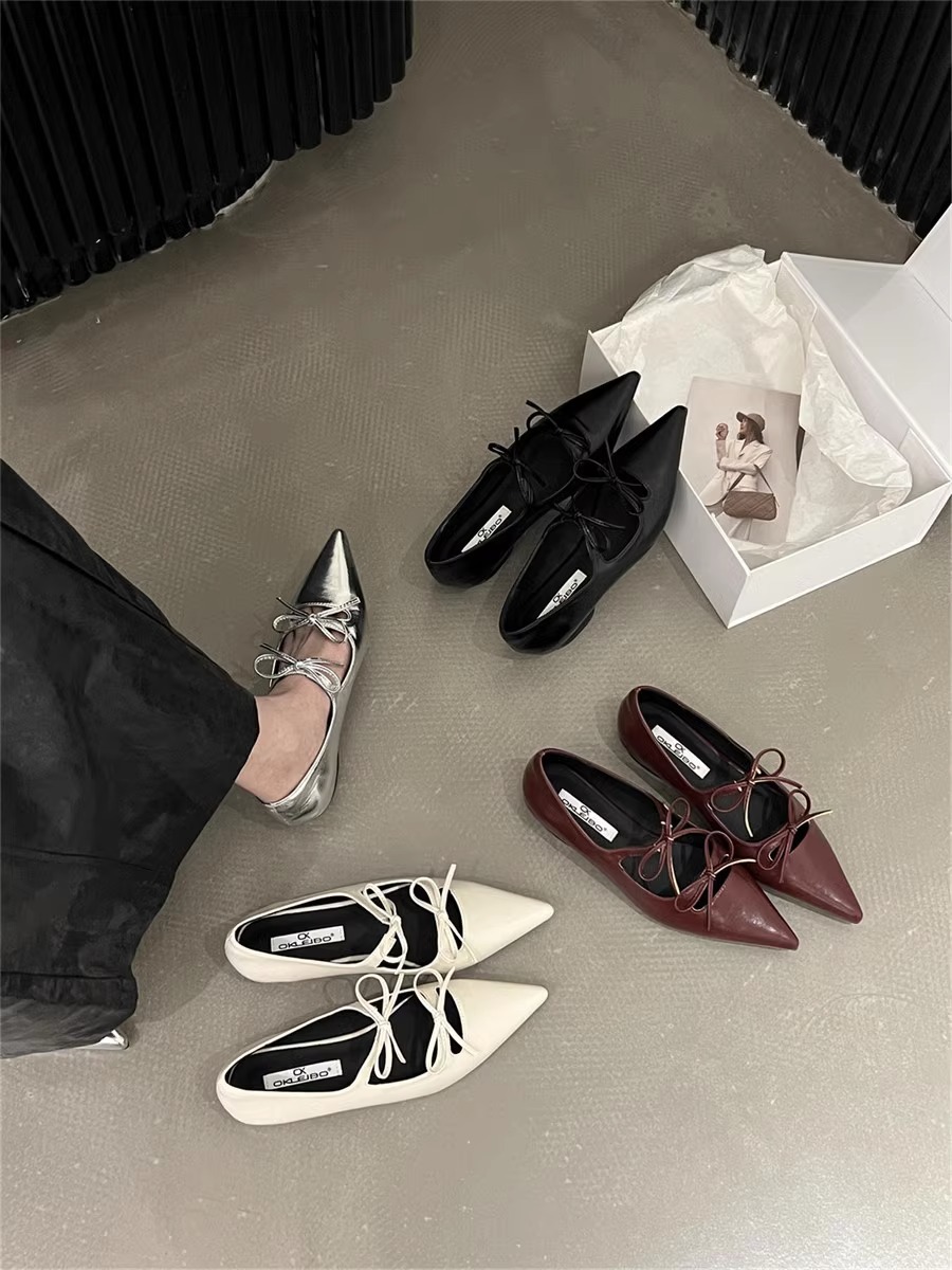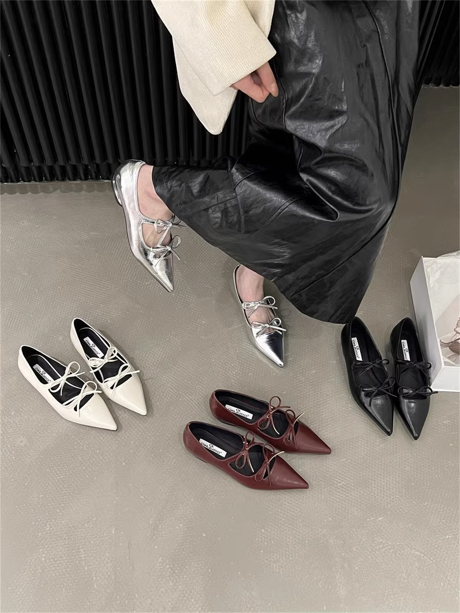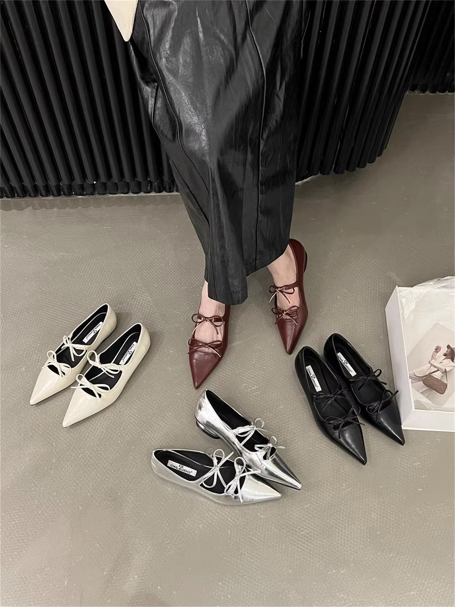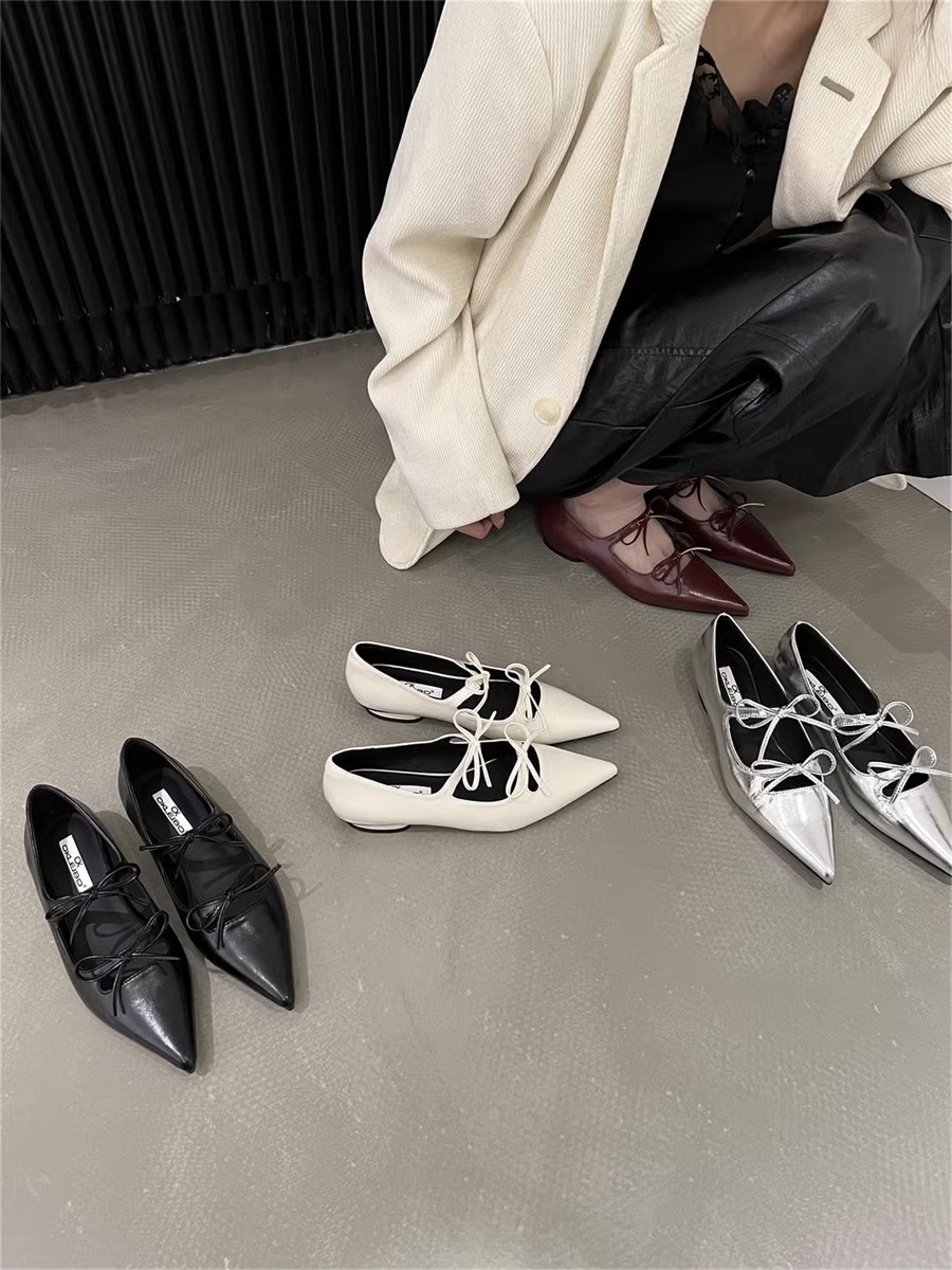 프랑스 스타일 우아한 얕은 입 포인팅 신발 여성의 2024 가을 새로운 한국 스타일 부드러운 요정 활 메리 제인 신발스토어 가기