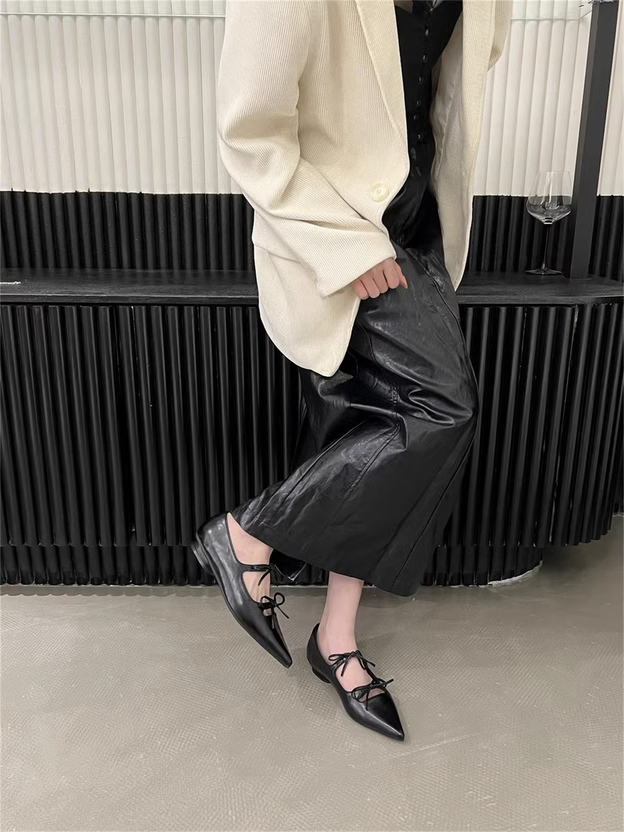 프랑스 스타일 우아한 얕은 입 포인팅 신발 여성의 2024 가을 새로운 한국 스타일 부드러운 요정 활 메리 제인 신발