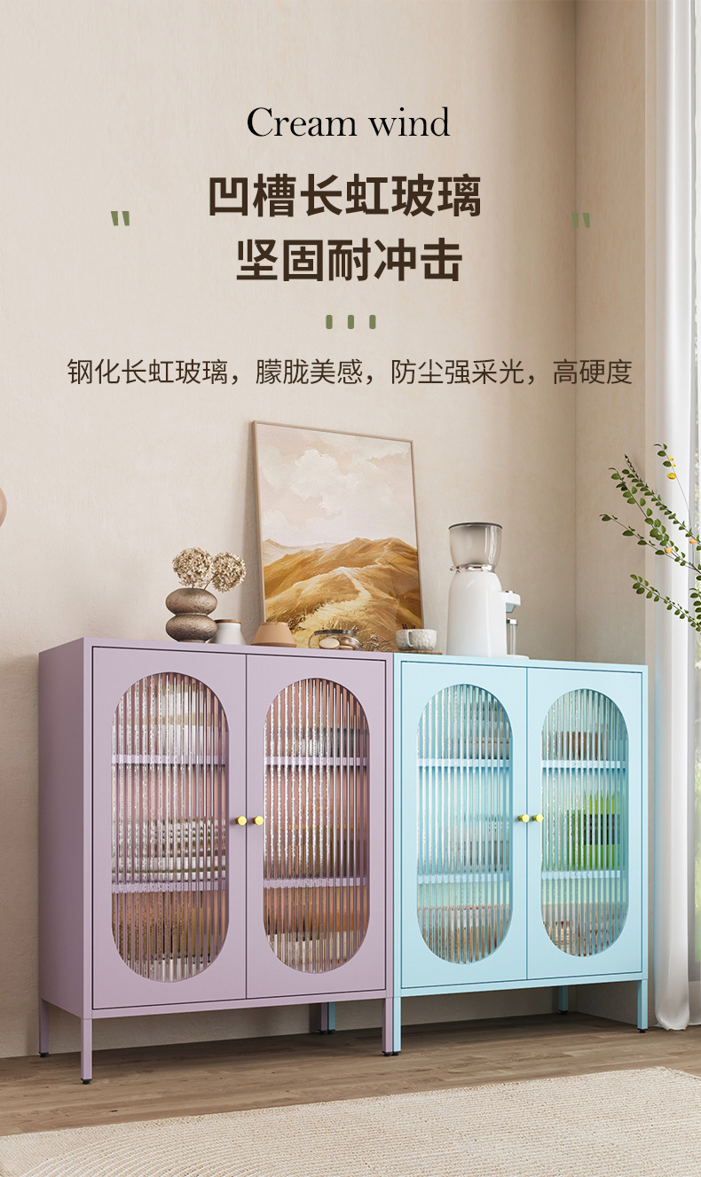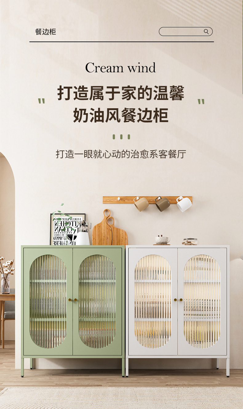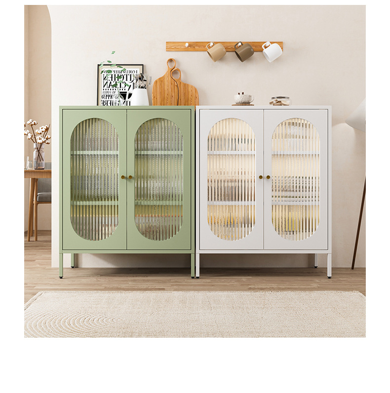 크림 스타일 철판 가정용 거실 차 캐비닛 간단한 와인 캐비닛 다기능 주방 캐비닛 보관 캐비닛