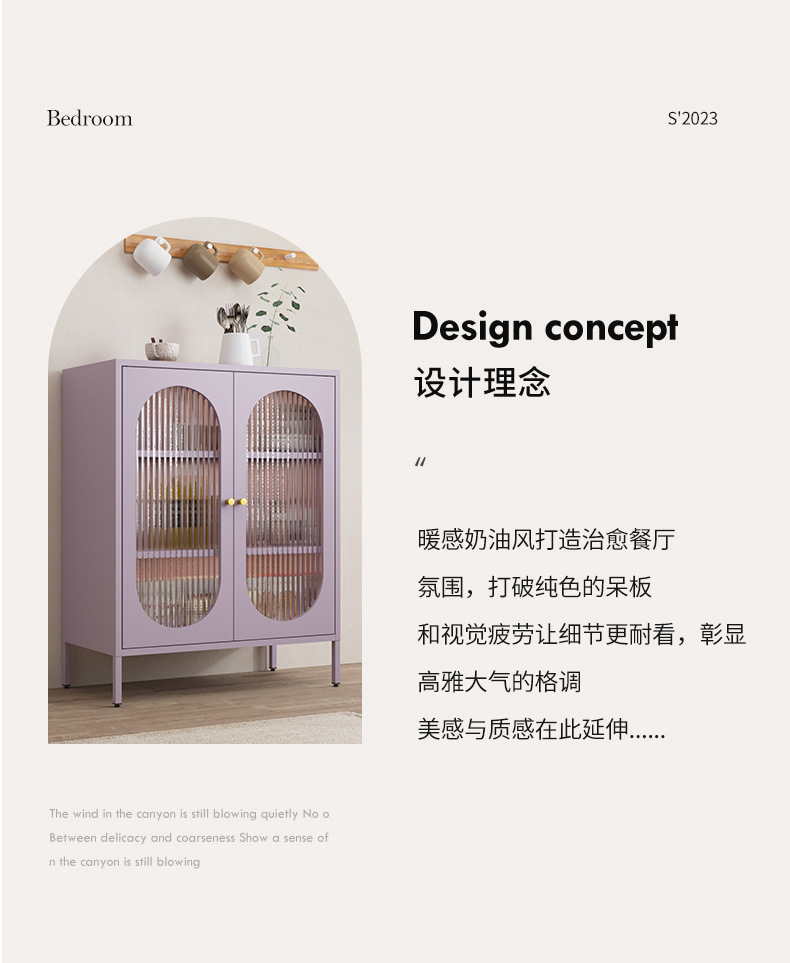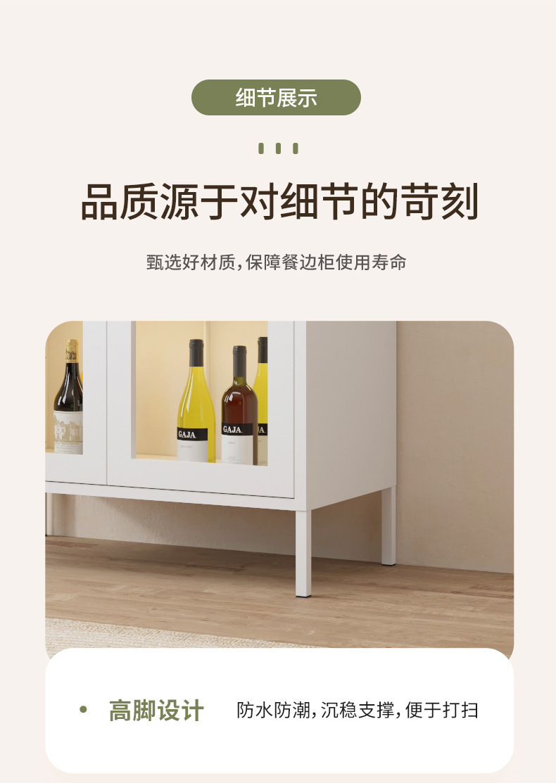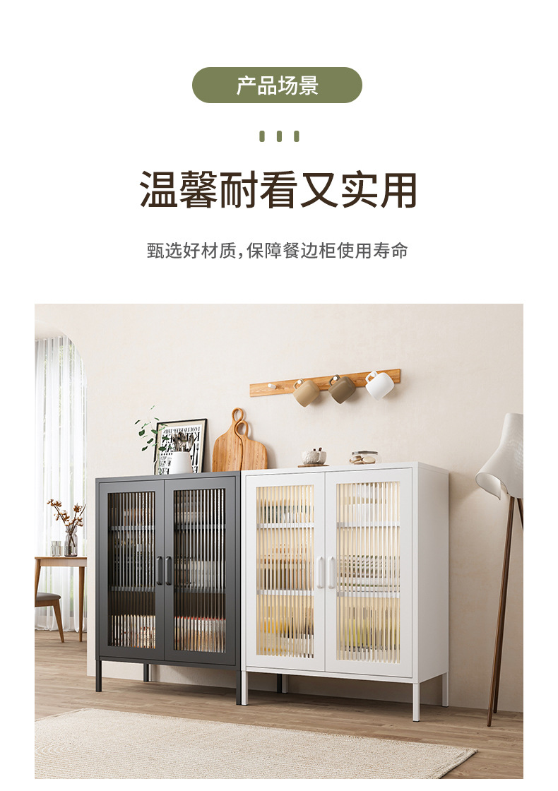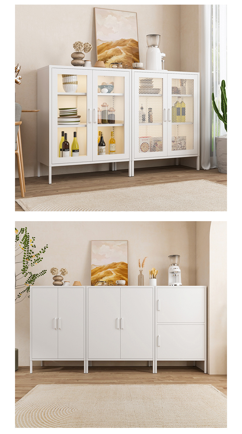 크림 스타일 철판 가정용 거실 차 캐비닛 간단한 와인 캐비닛 다기능 주방 캐비닛 보관 캐비닛
