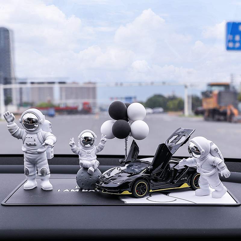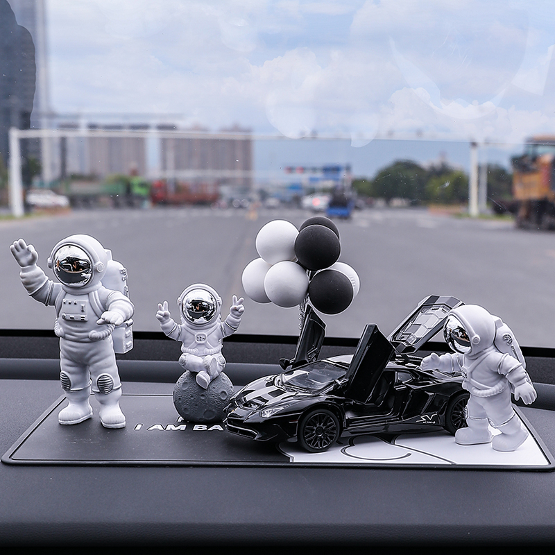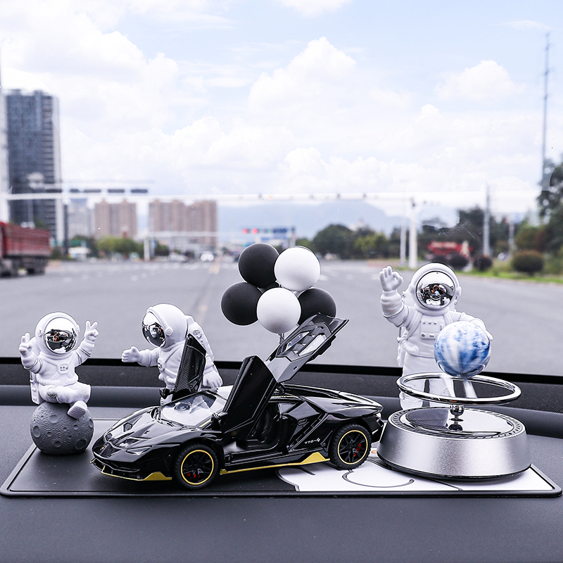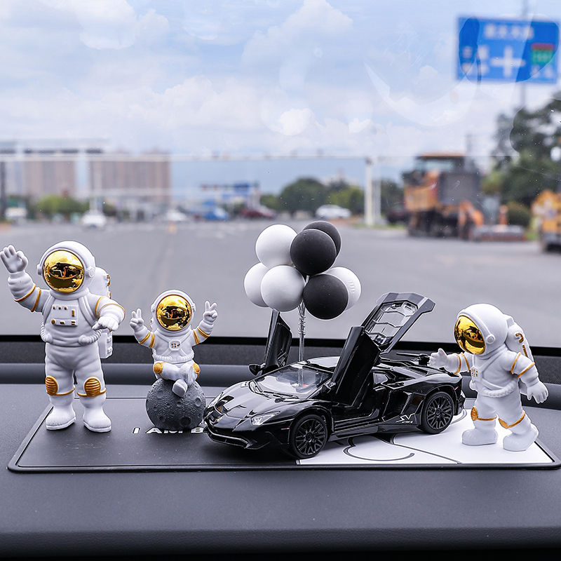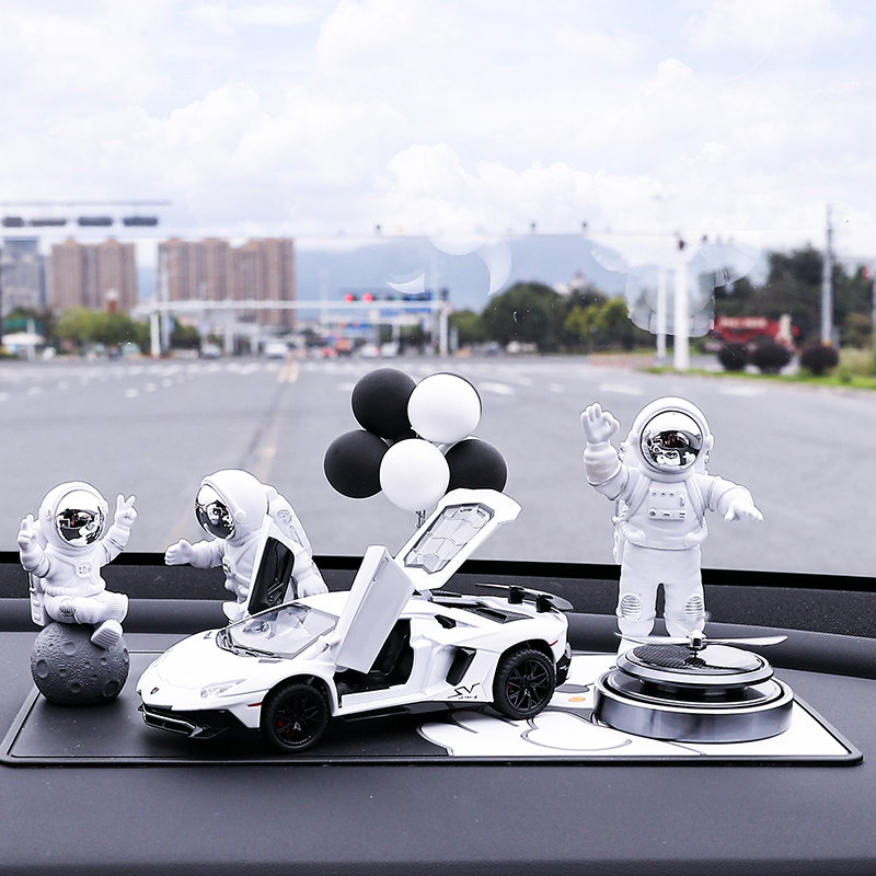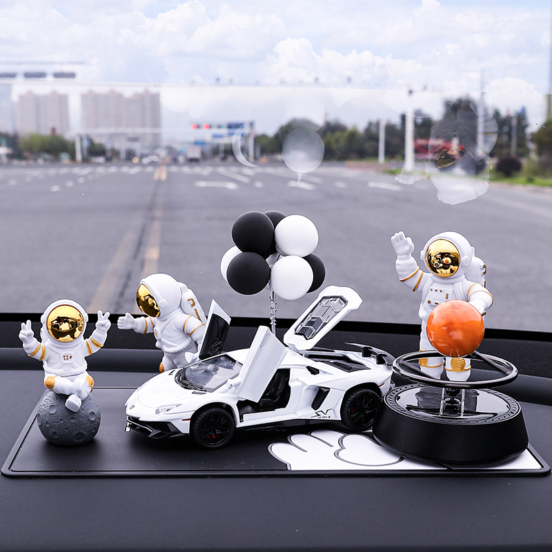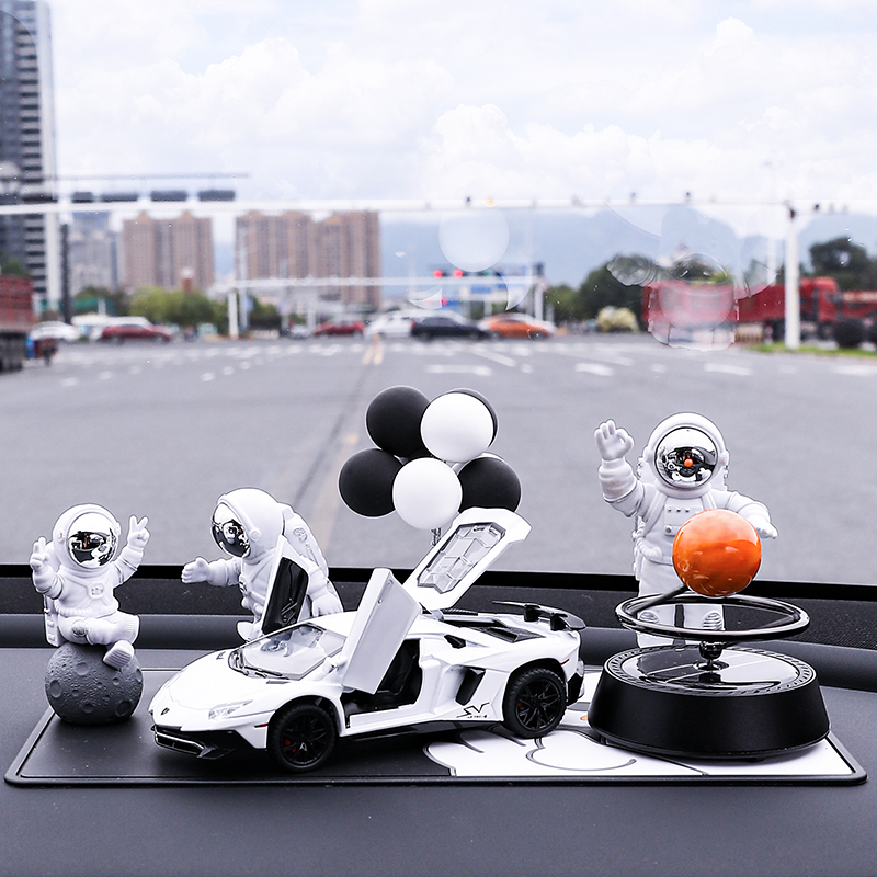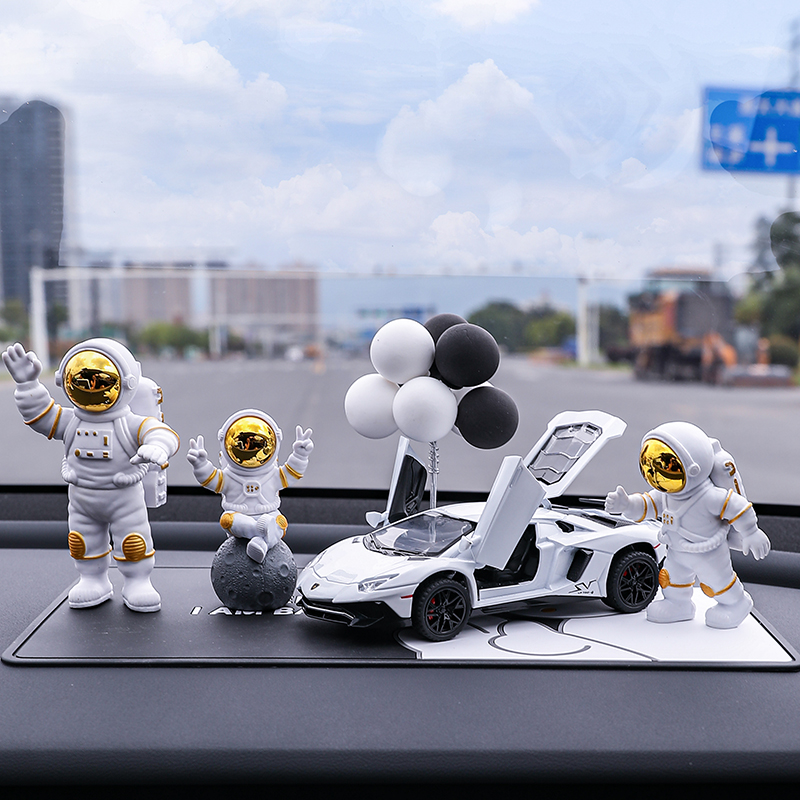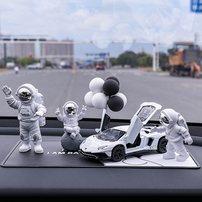 • 실버 우주비행사 3종 세트 + 검정색과 노란색 람보 + 비행접시 + 풍선 + 흰색 매트