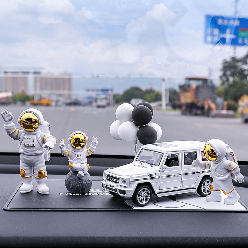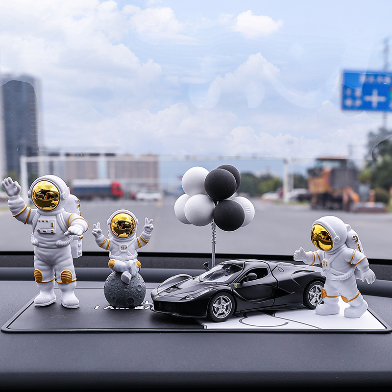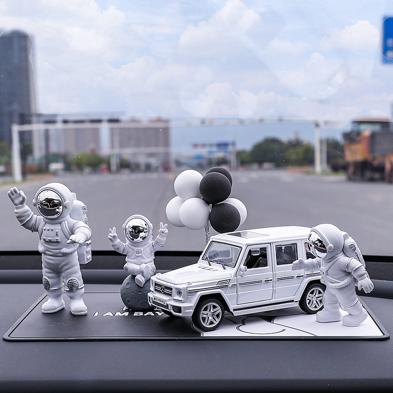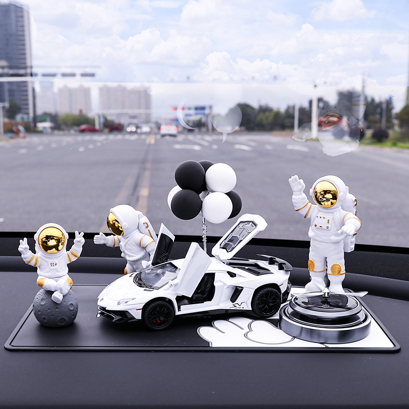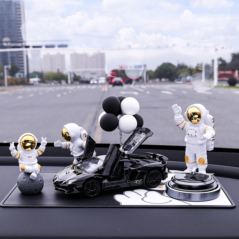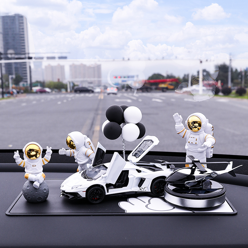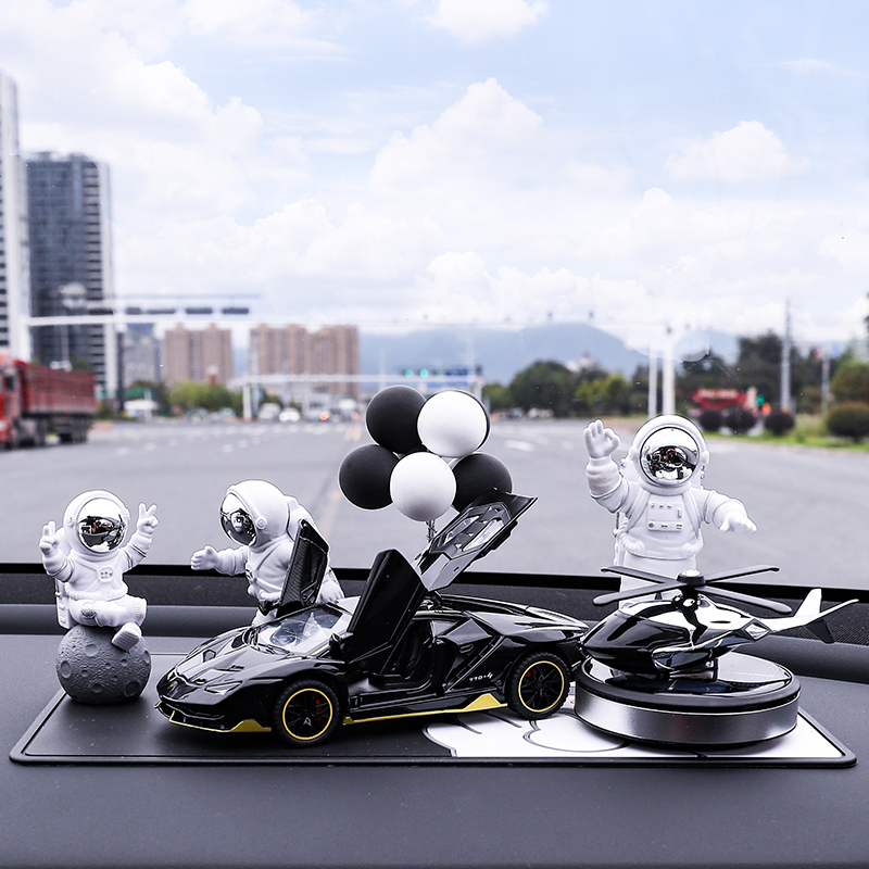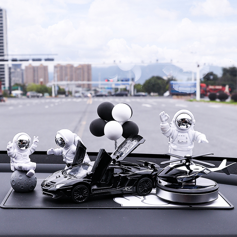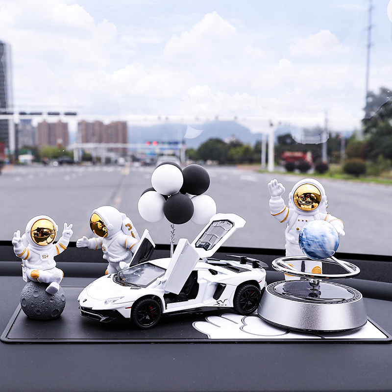 • 실버 우주비행사 3종 세트 + 검정색과 노란색 람보 + 비행접시 + 풍선 + 흰색 매트
