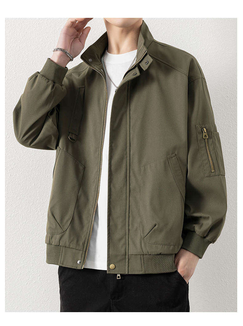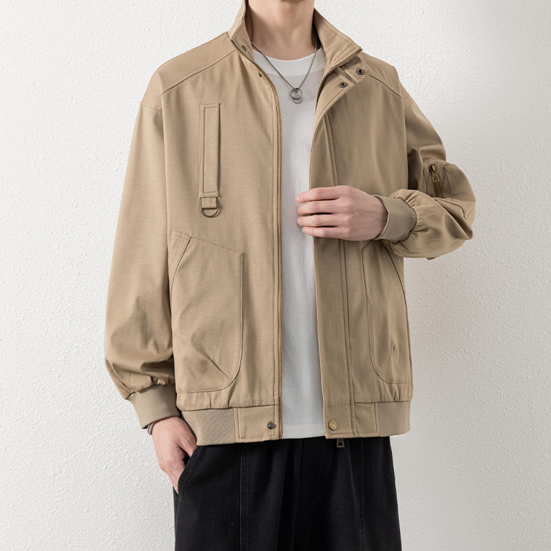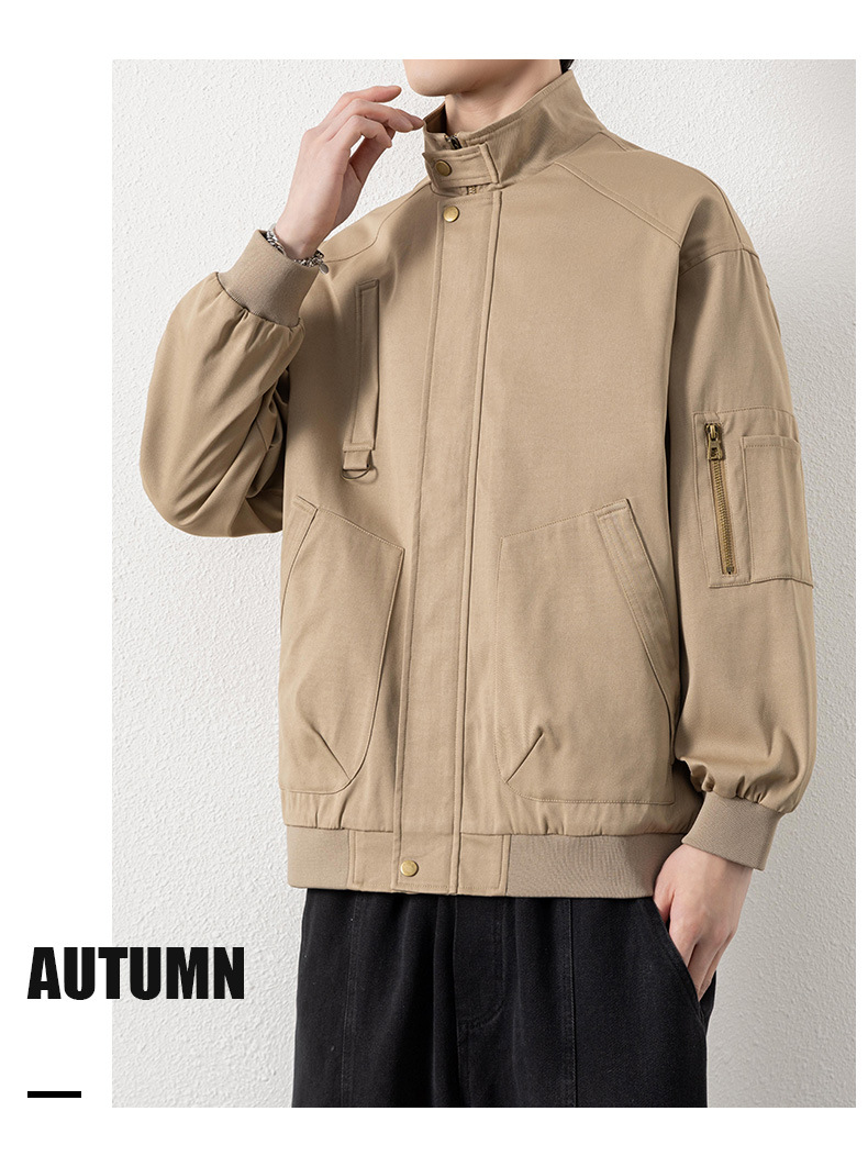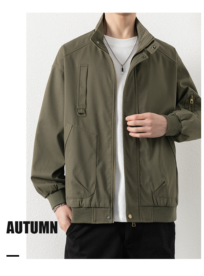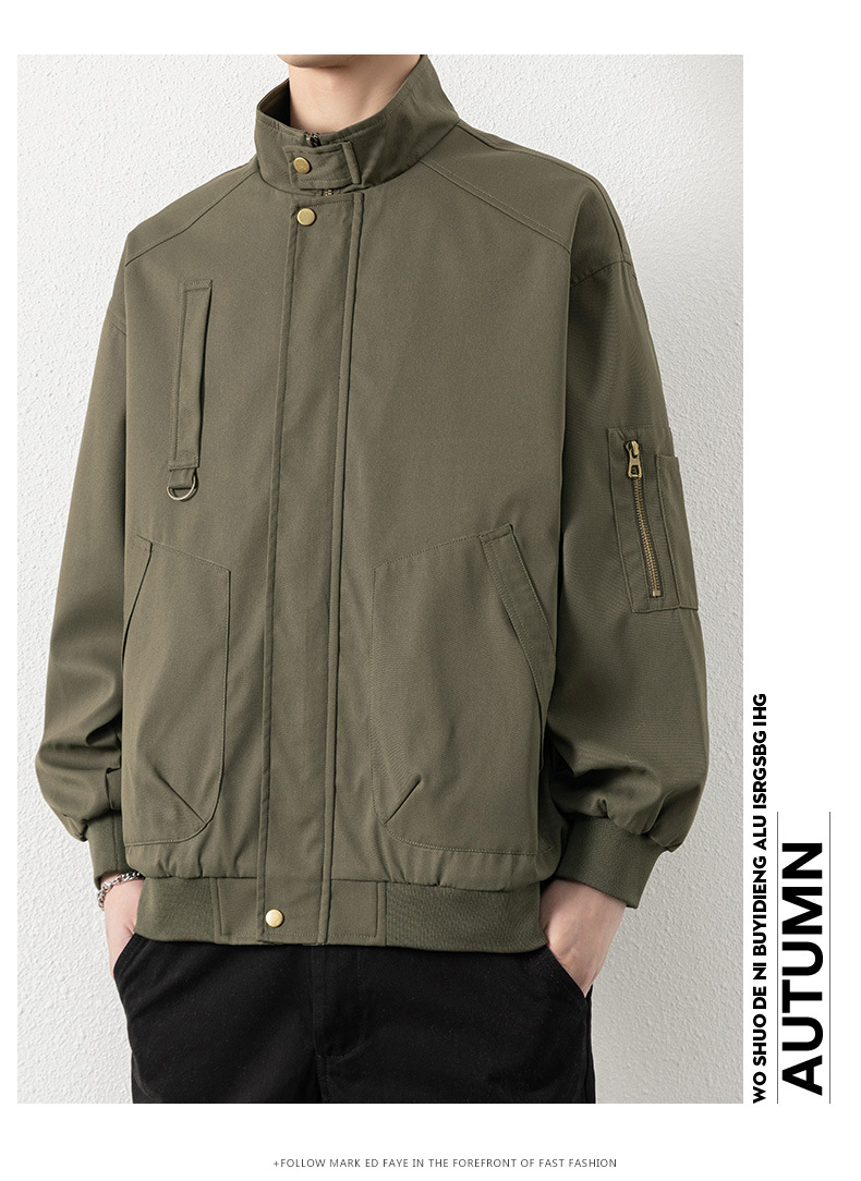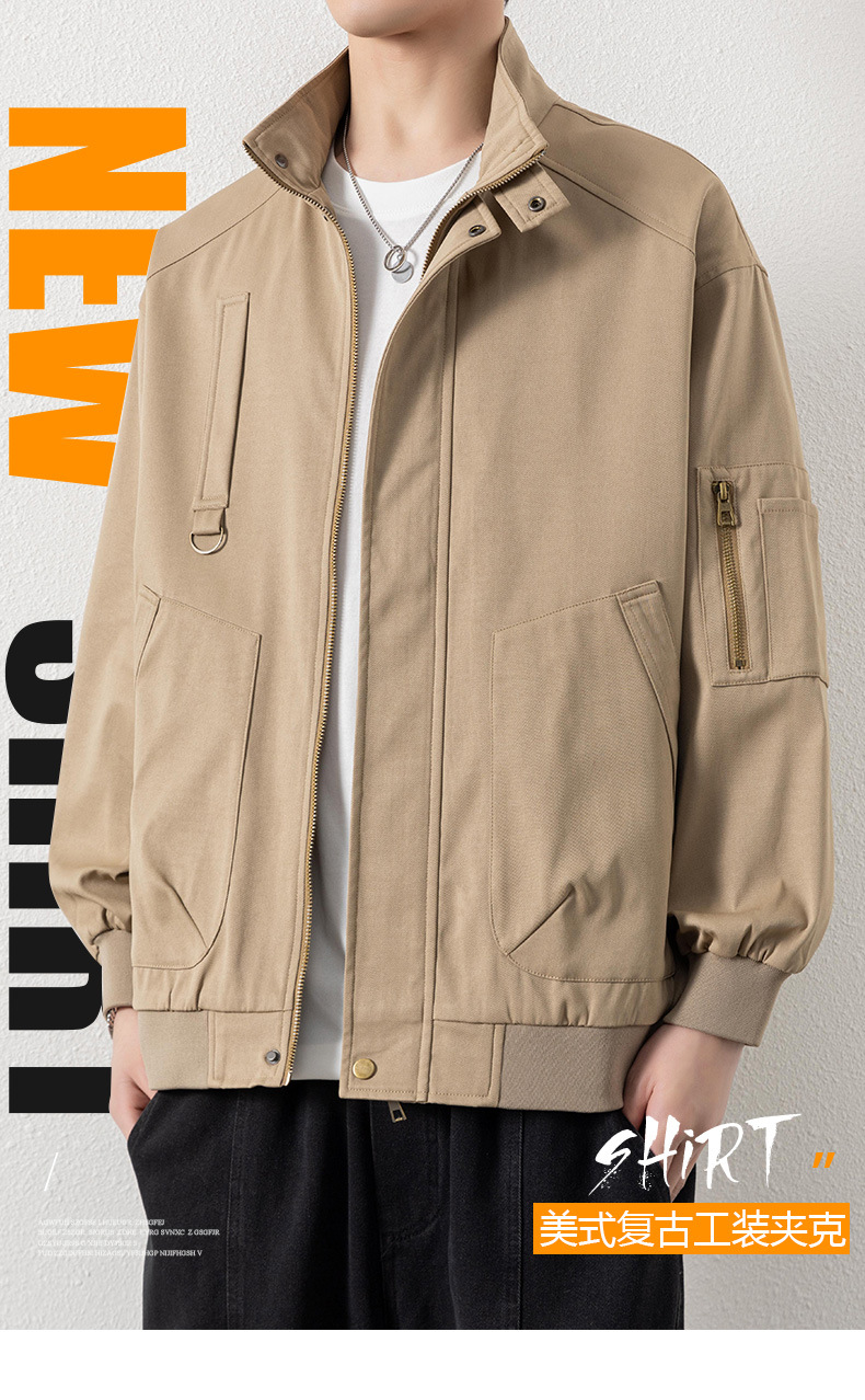 남성 자켓 캐주얼 이른 가을 고등학교 대학생 높은 수준의 야외 충전 의류 트렌디 브랜드 수직 칼라 작업 재킷