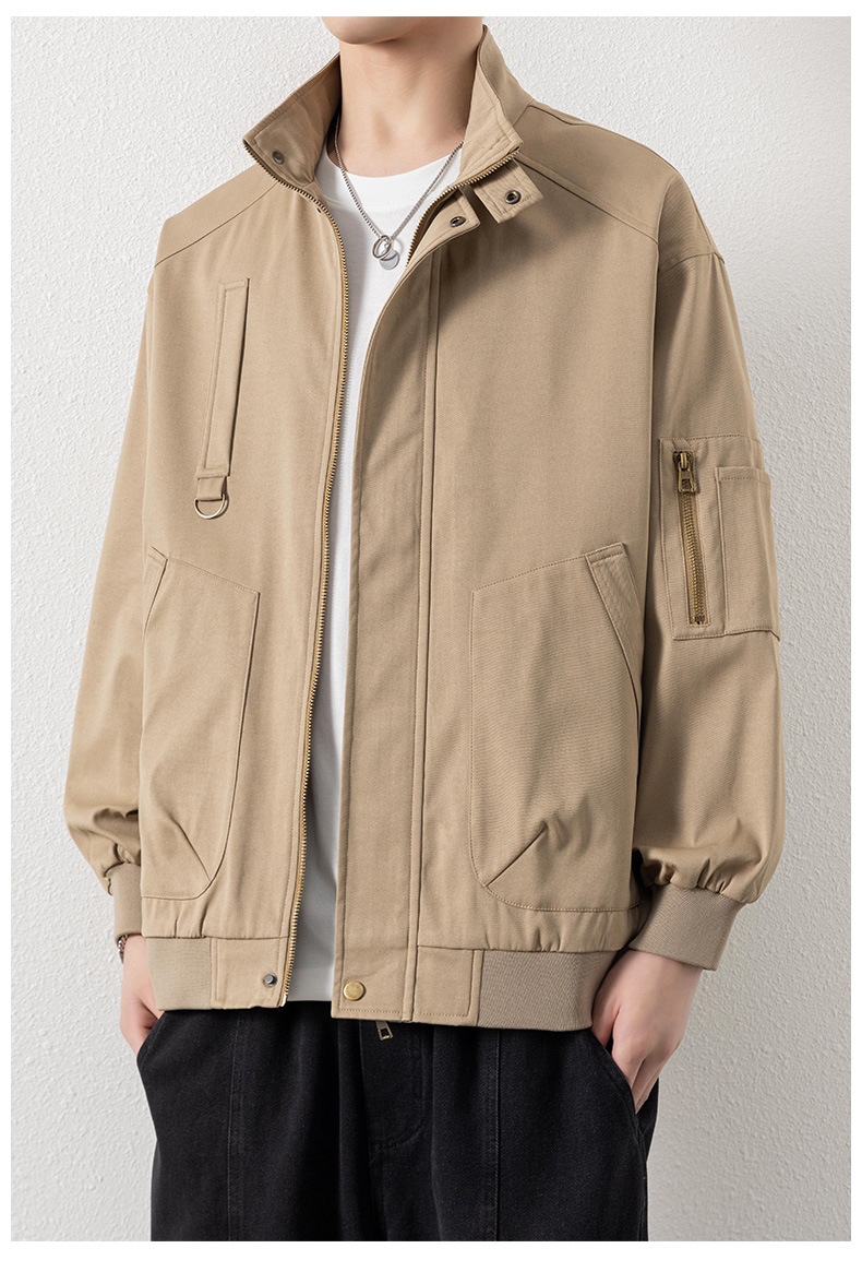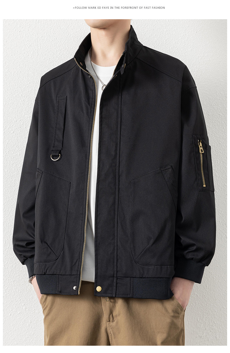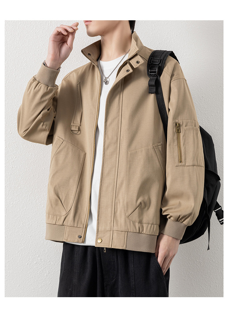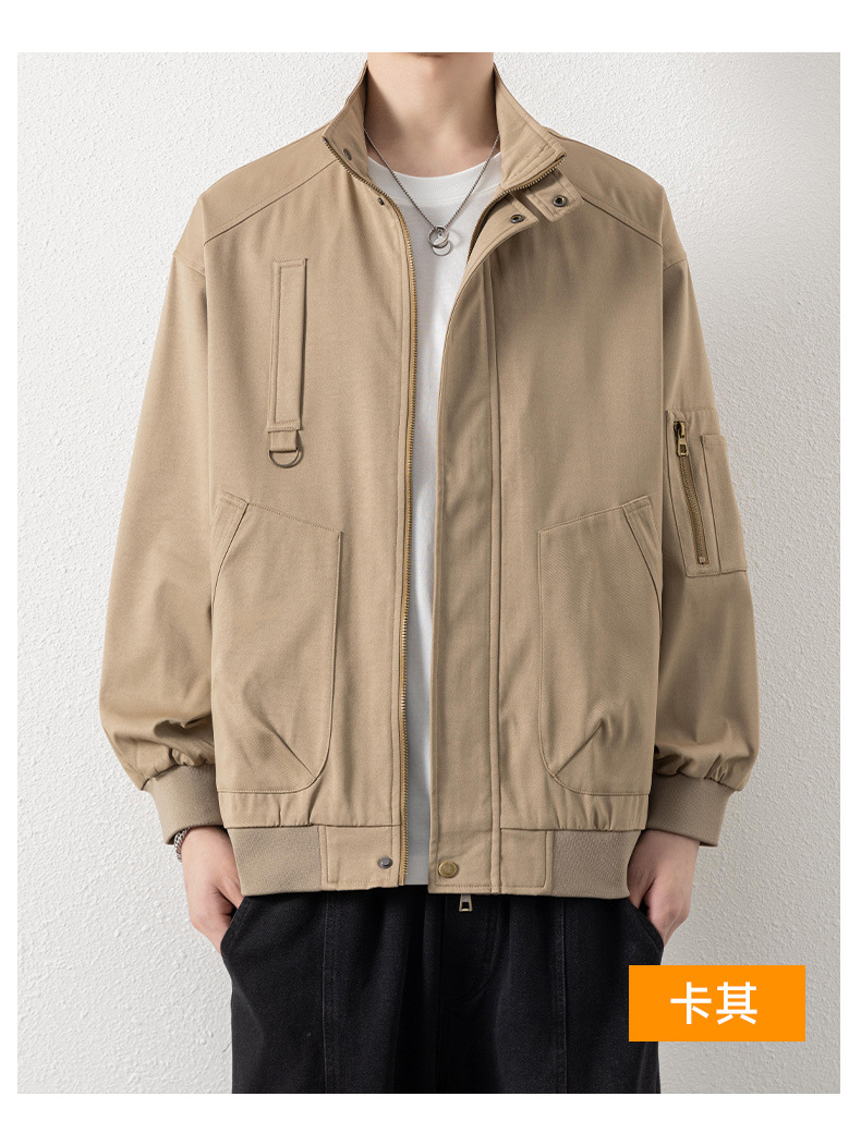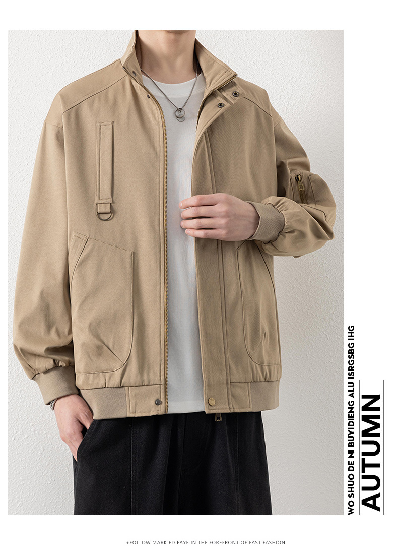 남성 자켓 캐주얼 이른 가을 고등학교 대학생 높은 수준의 야외 충전 의류 트렌디 브랜드 수직 칼라 작업 재킷