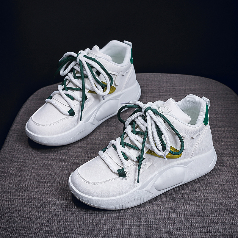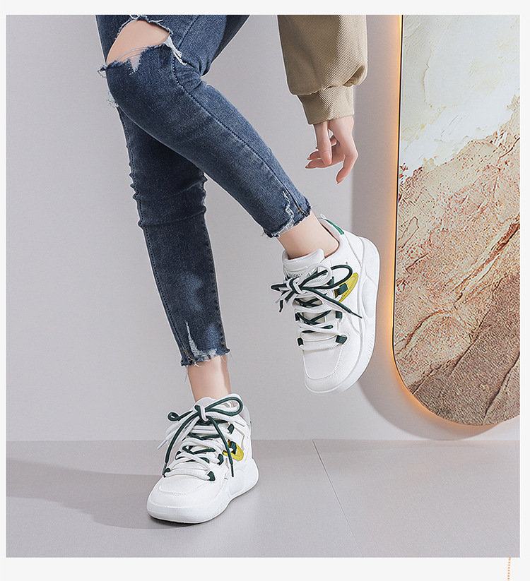 한국식 하이탑 화이트 슈즈 여성 2024 가을 신간 학생 캐주얼 슈즈 여성 플랫폼 빵 여성용 슈즈 K8638