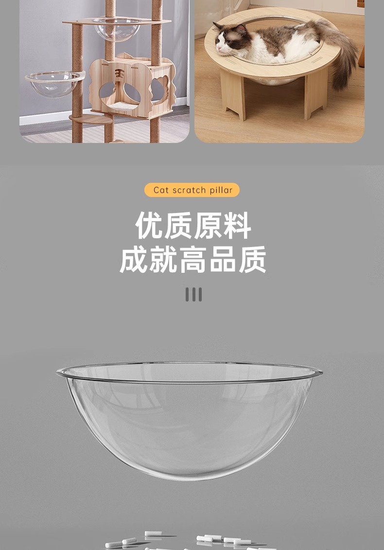 아크릴 투명 반구형 커버 고양이 둥지 DIY 수제 단단한 나무 고양이 둥지 소재 고양이 등반 랙 스페이스 캐빈 커버 액세서리
