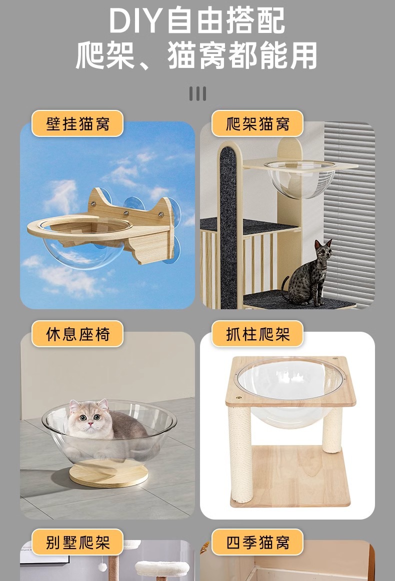 아크릴 투명 반구형 커버 고양이 둥지 DIY 수제 단단한 나무 고양이 둥지 소재 고양이 등반 랙 스페이스 캐빈 커버 액세서리스토어 가기