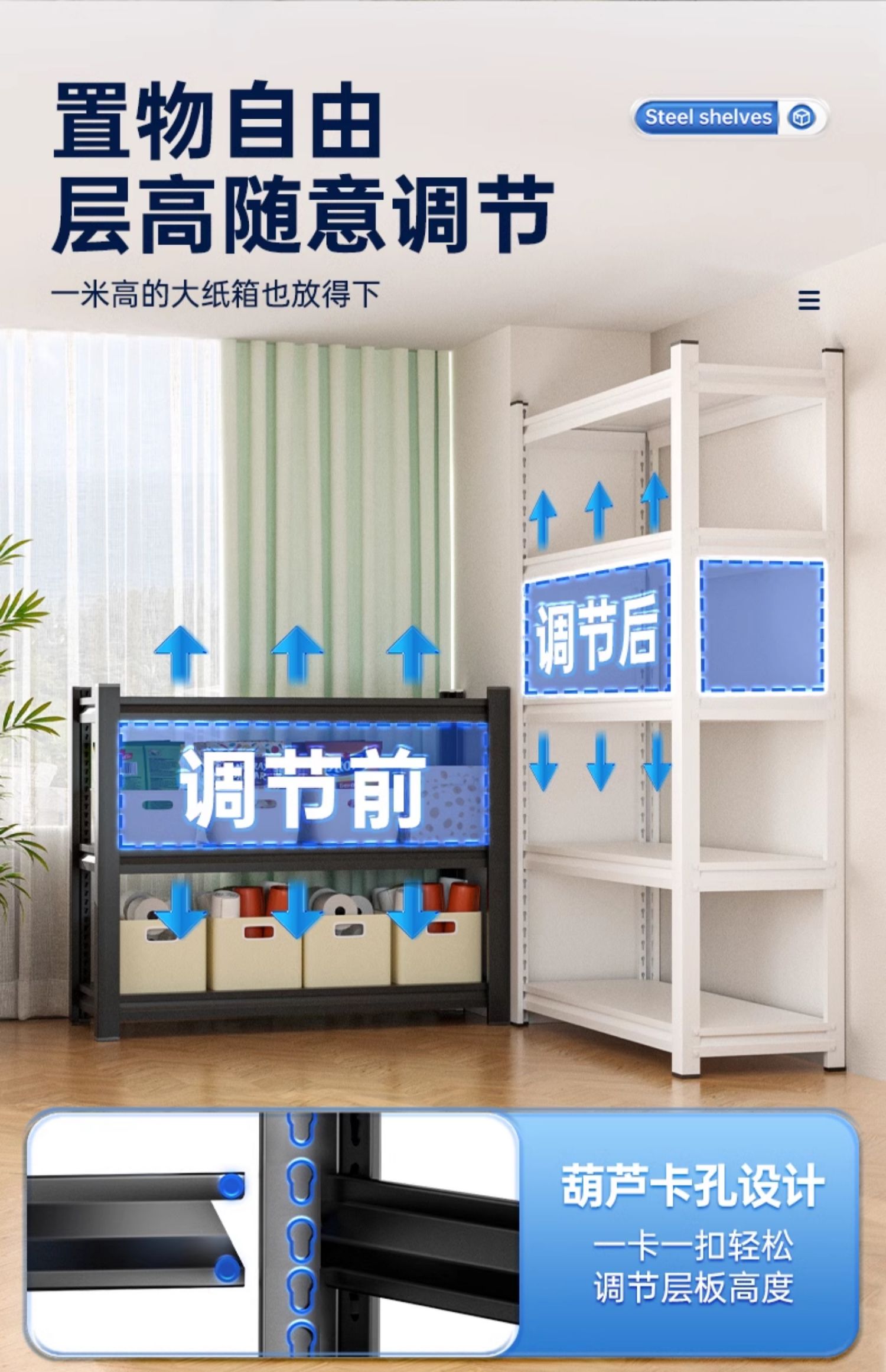 가정용 강철 선반 저장 랙 발코니 다층 바닥 저장 지하실 슈퍼마켓 상업용 저장 디스플레이 랙 캐비닛