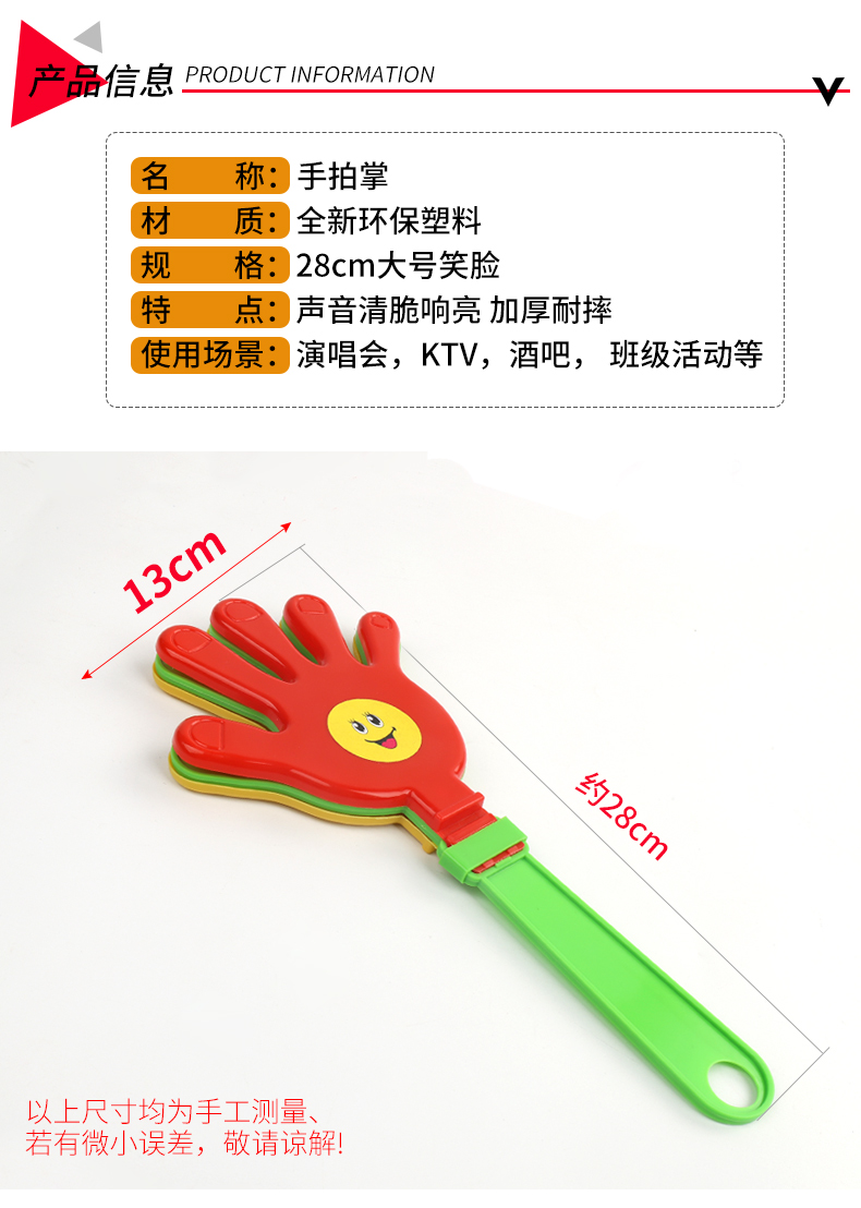 50 대형 휴대용 스포츠 회의 콘서트 응원 소품 치어 리더 분위기 소품 팜 플라스틱