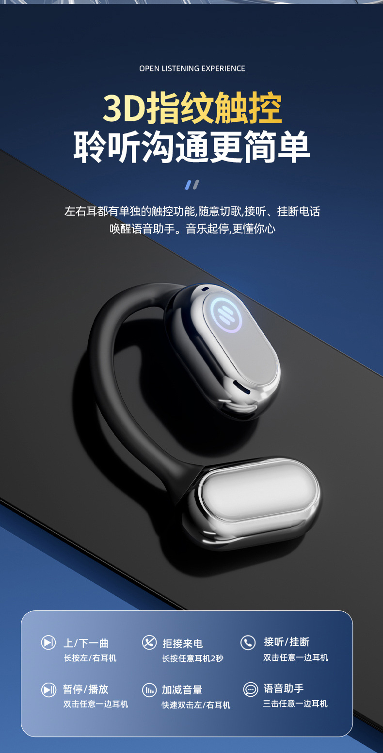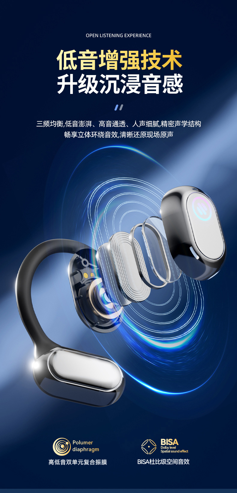 베를린의 목소리 OWS 귀 매달린 헤드폰 스테레오 서라운드 고화질 통화 소음 감소 긴 내구성 유니버설 공장 스트레이트 헤어
