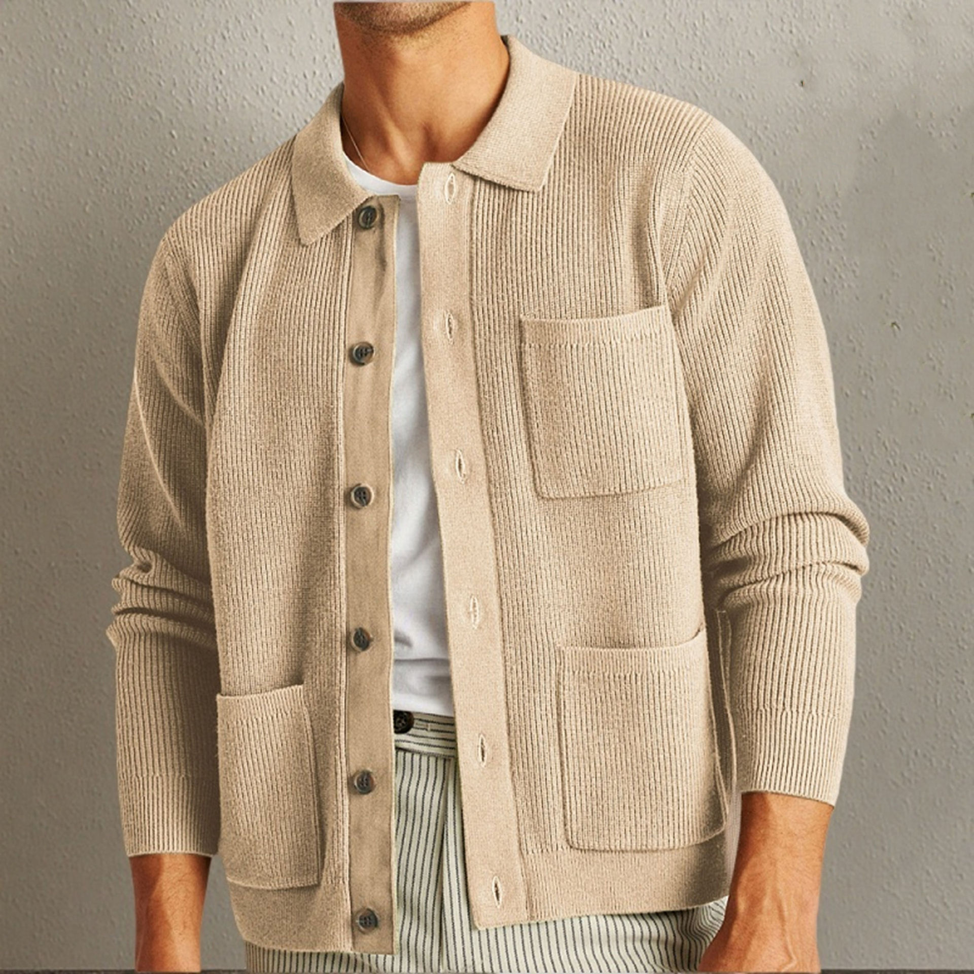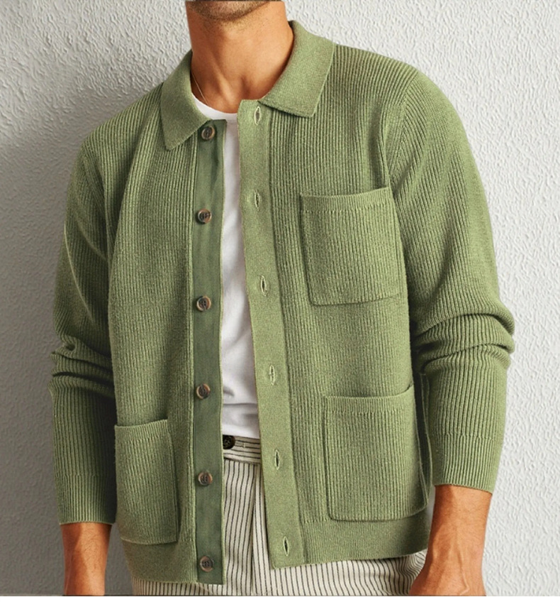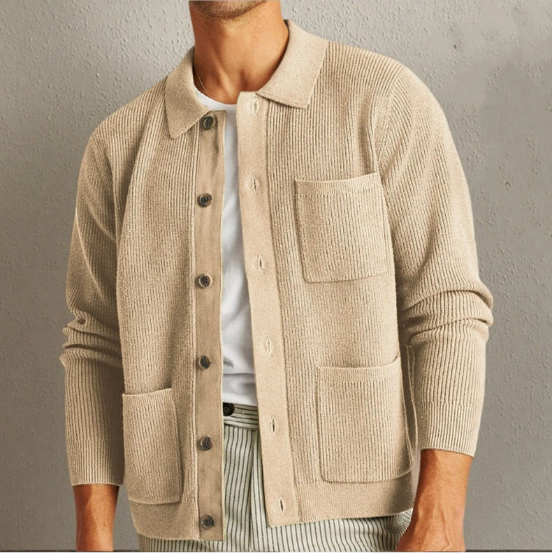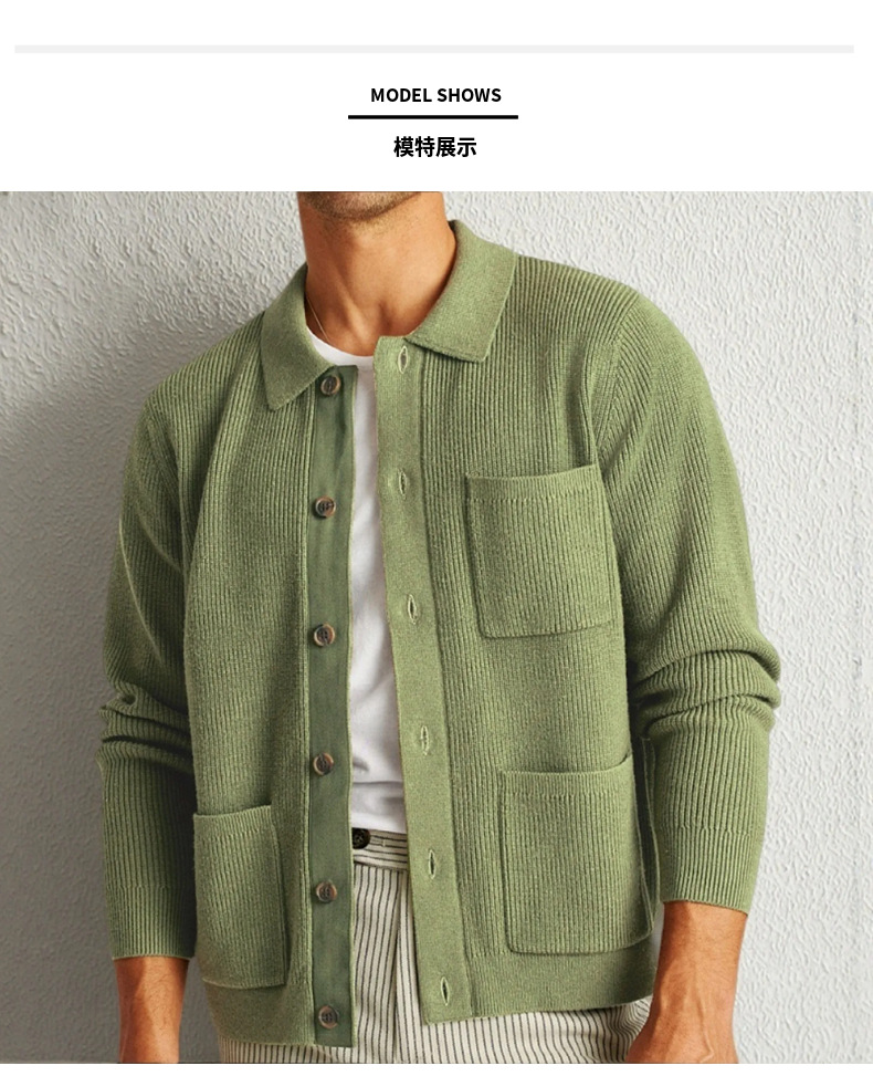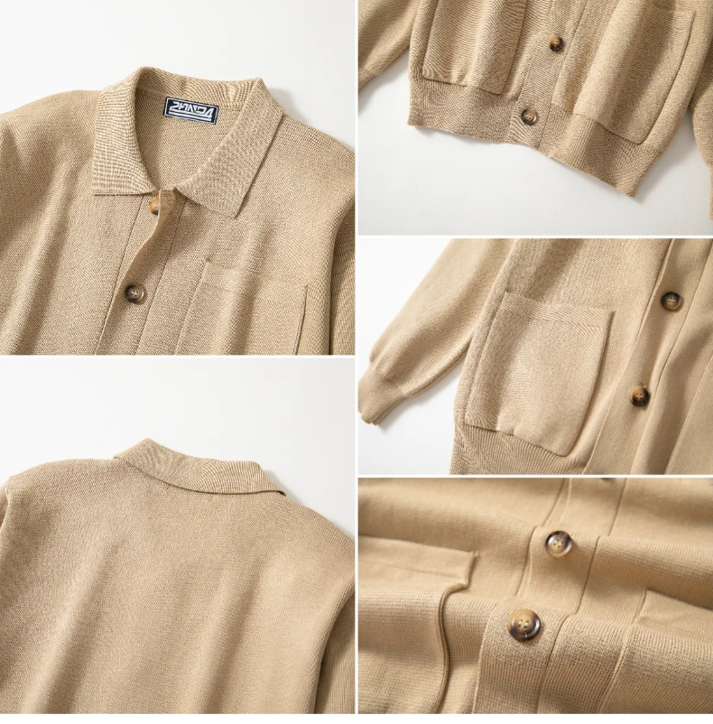 아마존 국경 남성 유럽과 미국의 봄과 가을 고밀도 니트 셔츠 칼라 긴 소매 스웨터 재킷 SY0016
