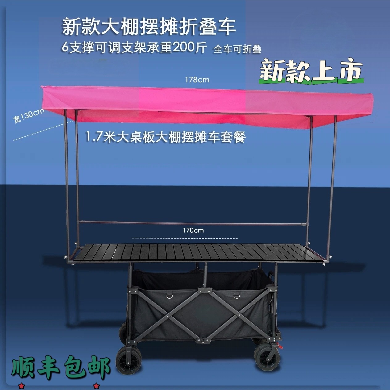 접이식 캠핑카 168*72 높이 조절 가능 노점 카트 야외 야시장 판매 카트 휴대용 접이식 소형 카트스토어 가기