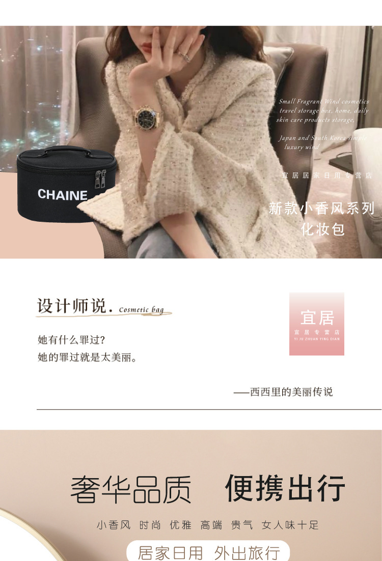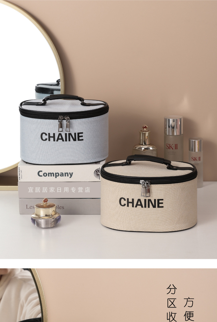 화장품 가방 간단한 휴대용 대용량 Ins 샤넬 스타일 휴대용 여행 워시 백 데스크탑 스킨 케어 스토리지 박스