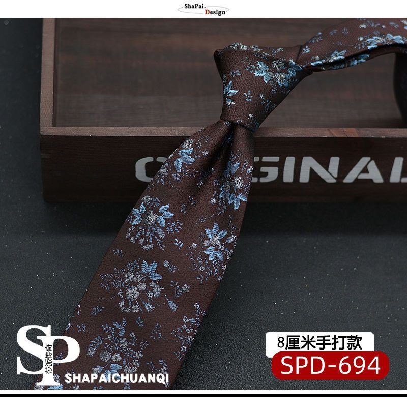 원피스 넥타이 남성용 영국 비즈니스 전문 복장 복고풍 다크 브라운 줄무늬 꽃 8CM 손 패션스토어 가기