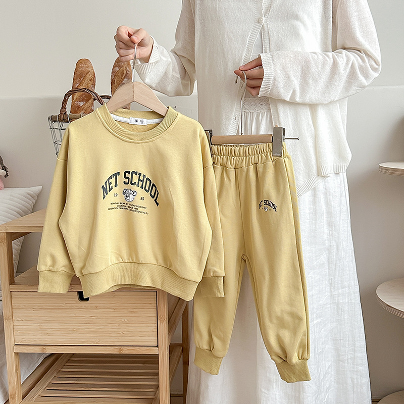 소년 가을 곰 스포츠 정장 2025 한국 아동 의류 유아 소녀 캐주얼 코튼 스웨트 투피스 세트스토어 가기