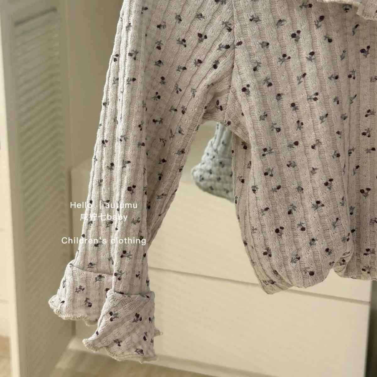 소녀 한국 스타일 봄과 가을 꽃 속옷 긴 소매 인형 칼라 느슨한 블루머