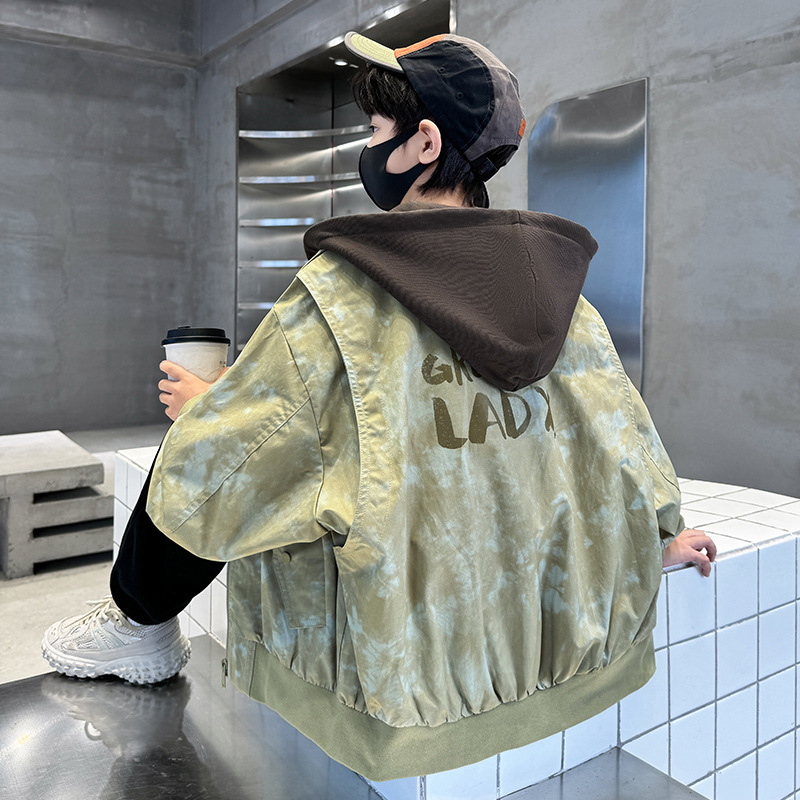 남아용 코트 봄 가을 스타일 2026 신상 중대형 아동 가을 재킷 스트리트 스타일 아동 가을 위장 후드 상의