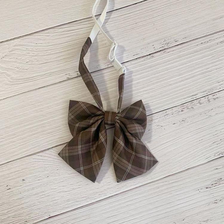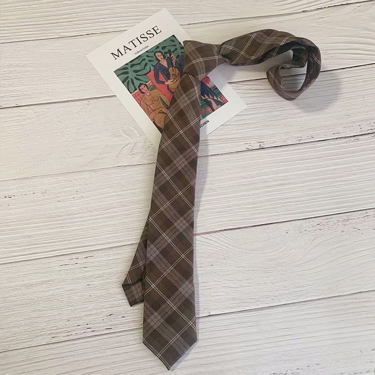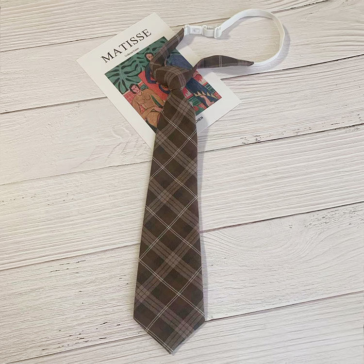 다크 브라운 JK 작은 넥타이 여성용 빈티지 셔츠 장식 일본 대학 스타일 DK 짧은 게으른 격자 무늬 넥타이스토어 가기