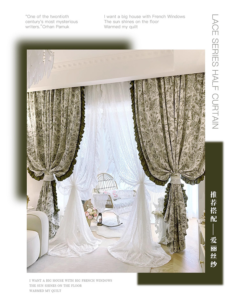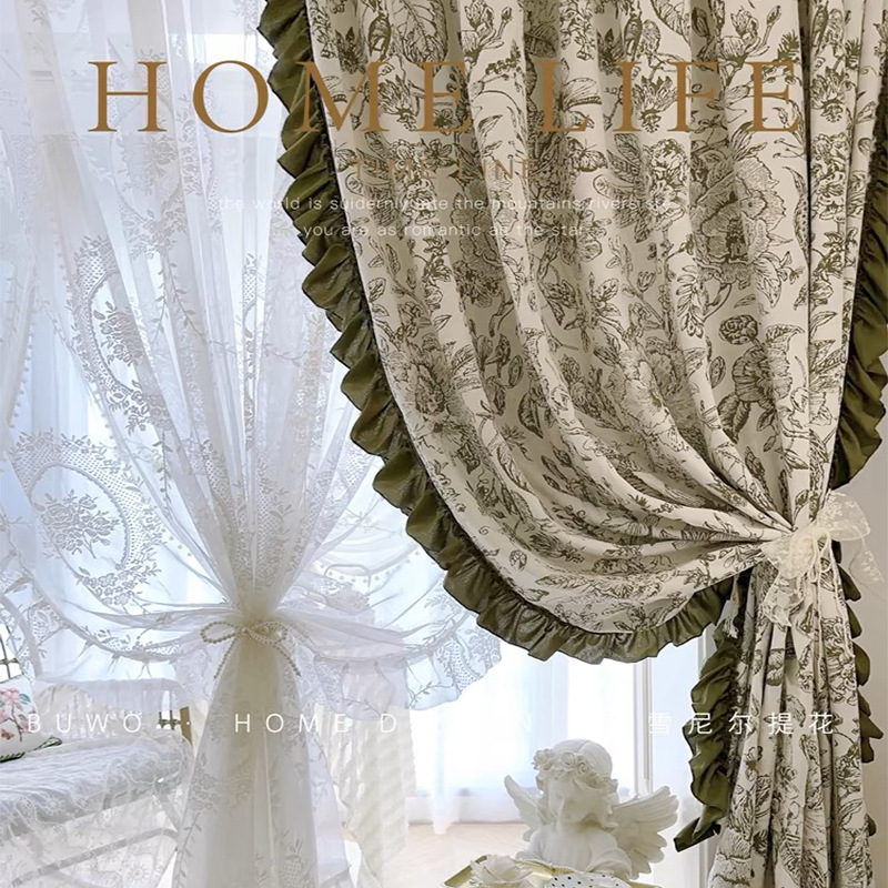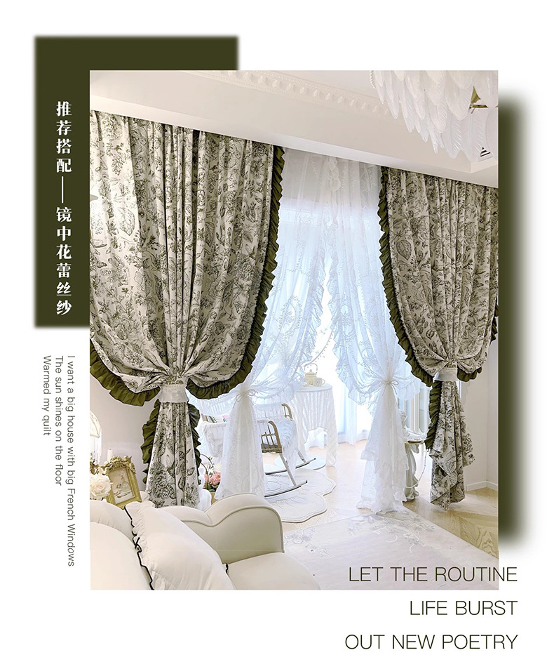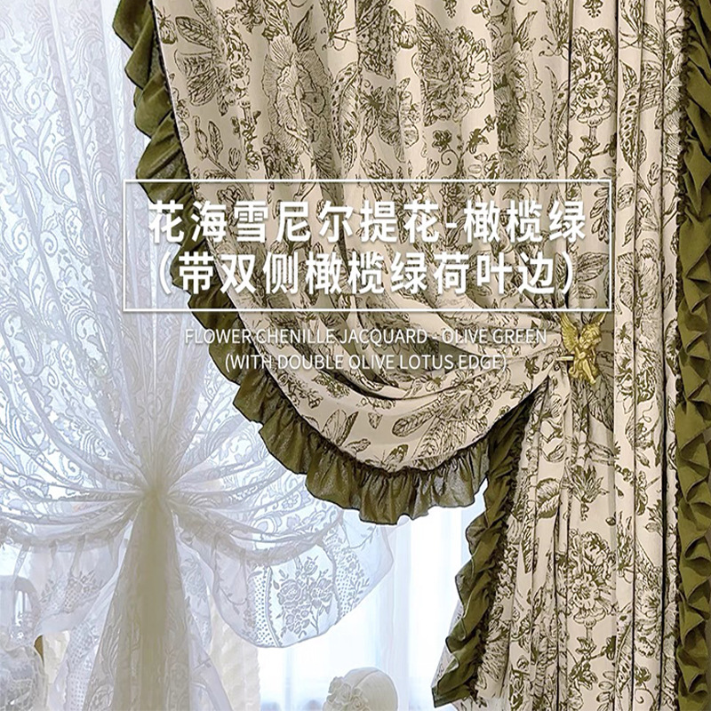 올리브 그린 꽃 바다 Chenille Jacquard 천 프랑스 복고풍 스타일 거실 발코니 침실 베이 창 장식 커튼 Keqiao
