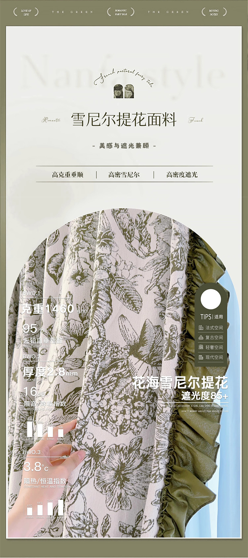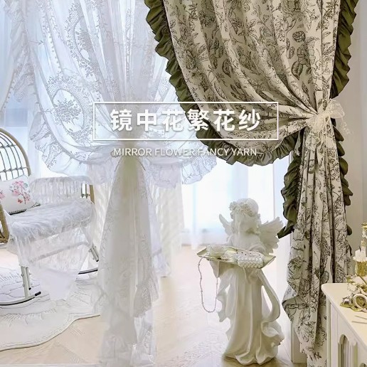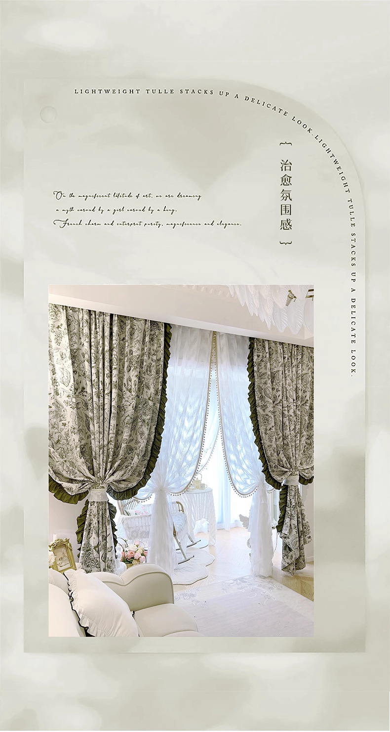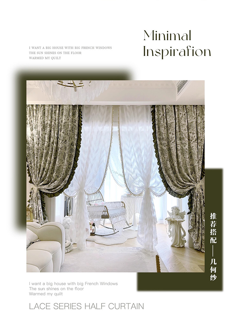 올리브 그린 꽃 바다 Chenille Jacquard 천 프랑스 복고풍 스타일 거실 발코니 침실 베이 창 장식 커튼 Keqiao