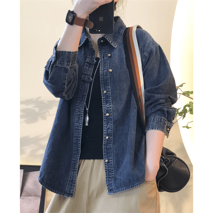 빈티지 슬리밍 느슨한 캐주얼 데님 셔츠 재킷 여성의 2024 가을 새로운 캐주얼 루즈 탑