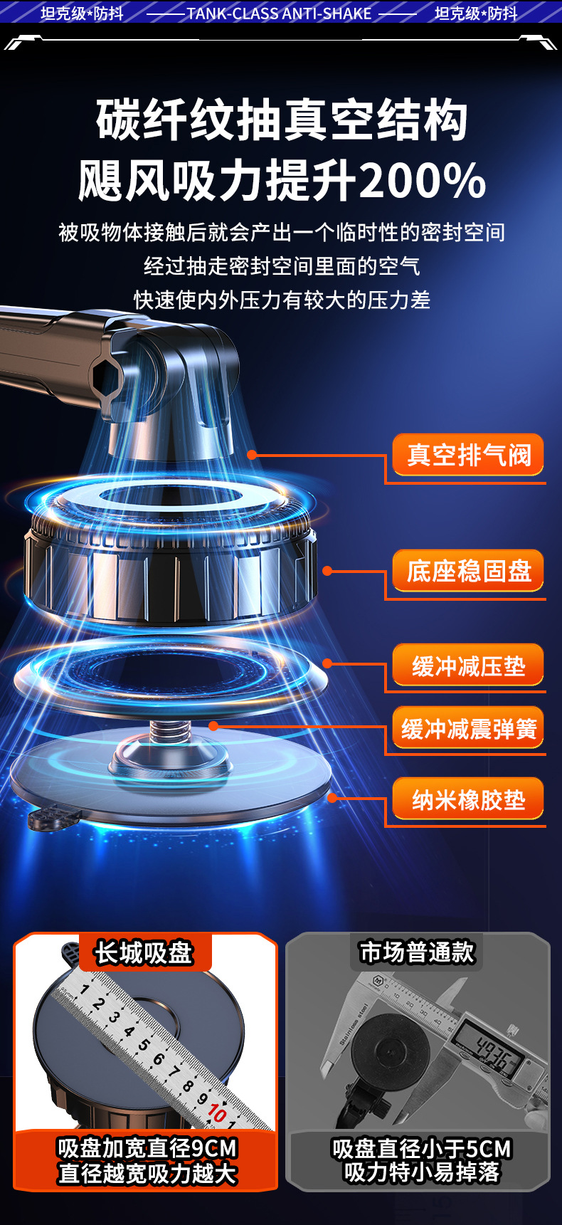 • 업그레이드된 대형 흡입 컵 브래킷 + 차량용 충전기