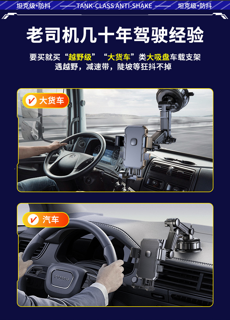 Longqi 대형 트럭 휴대 전화 자동차 홀더 새로운 자동차 흡입 컵 탐색 충격 방지 안정적인 지원 휴대 전화 홀더