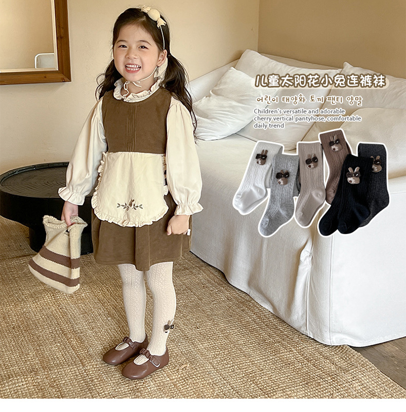 2024 새로운 봄과 가을 소녀 레깅스 작은 다이아몬드 해바라기 토끼 아기 어린이 레깅스 소녀 바지스토어 가기